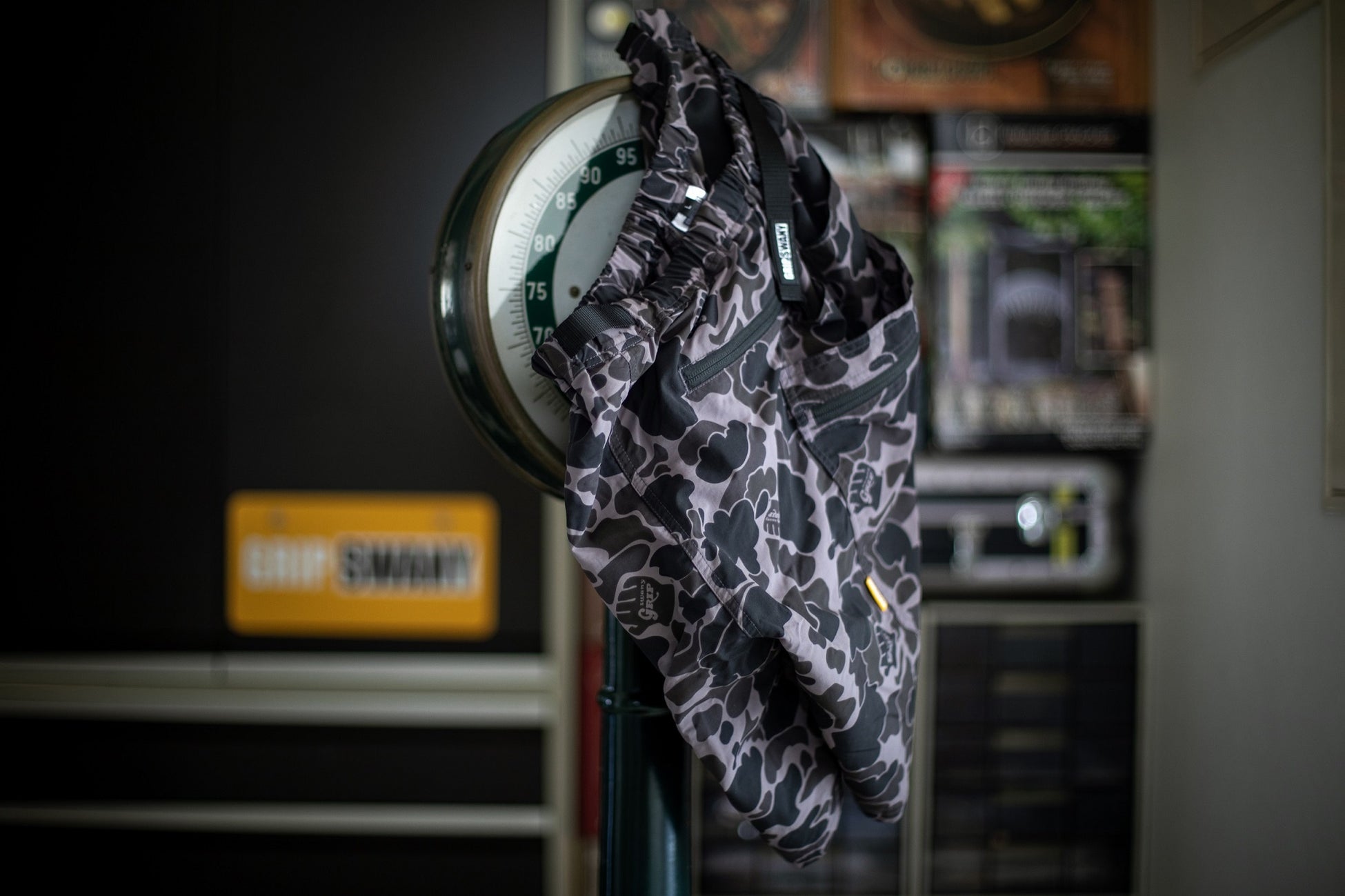 アウトドアからタウンユースまで幅広く活躍するアーバンなブラックカモを採用
