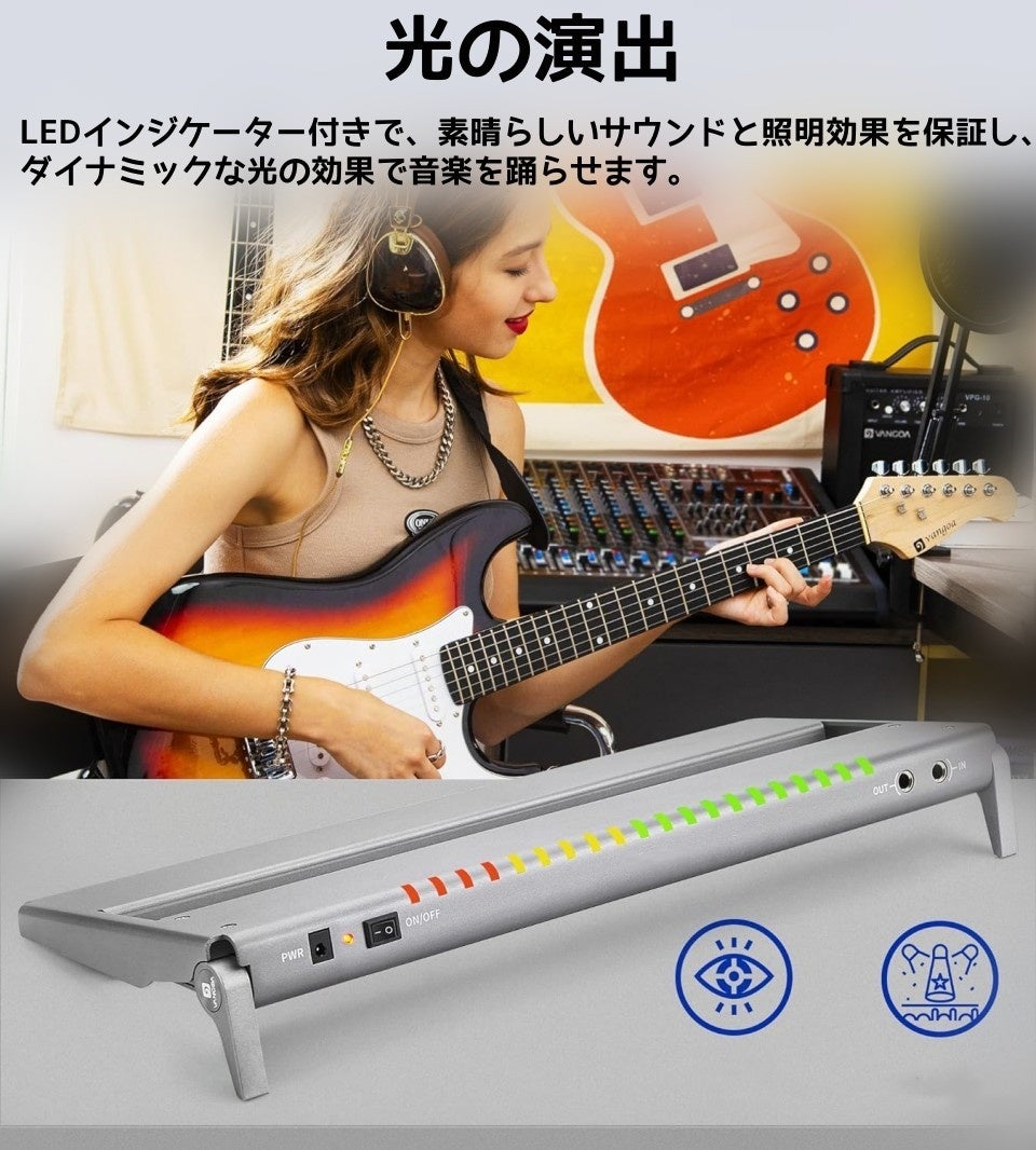 このペダルボードは、素晴らしいサウンドと照明効果を保証し、盛り上がるクライマックスへと導き、ショーをユニークでエキサイティングなものにします