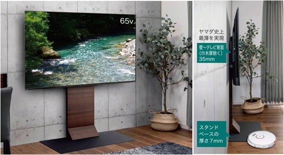 ヤマダ史上最薄‼スタンドスペースわずか7㎜のユニバーサルデザイン「フラットベース 壁寄せテレビスタンド」発売