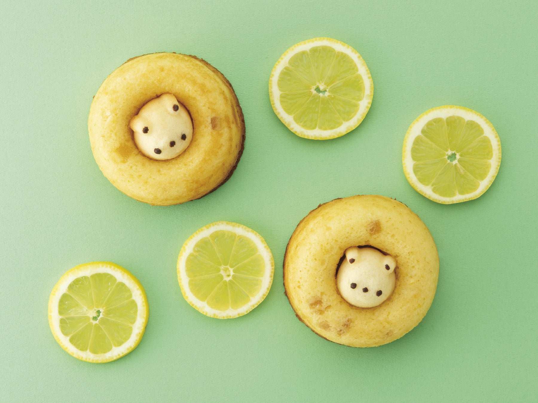 夏にピッタリ!生搾りレモン果汁でスッキリ、さっぱり!レモンピールが食感のアクセントになっている、見た目もかわいい焼きドーナツです。