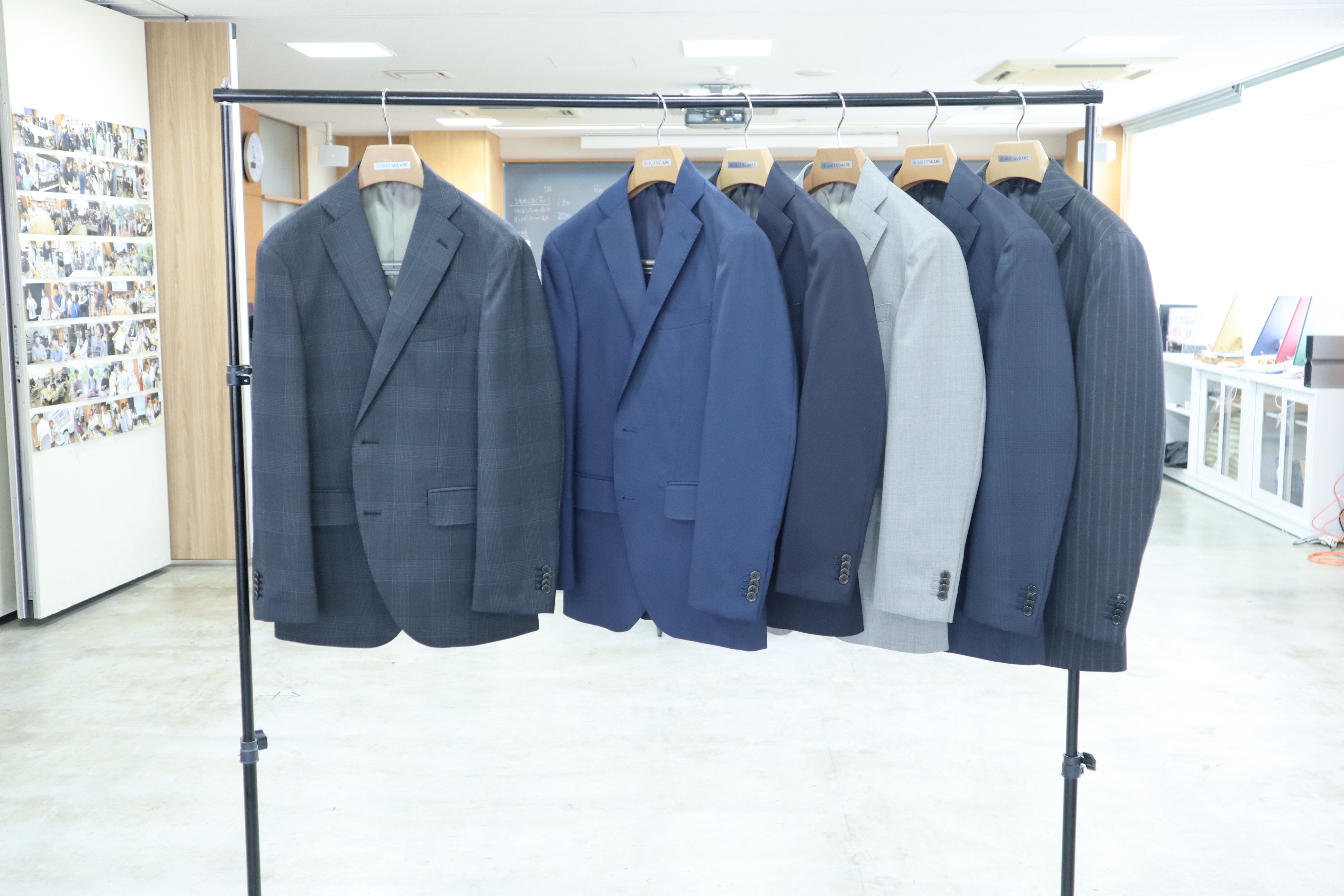 「オーダースーツ制服」は、性別にとらわれず自分の好みに合わせたデザインを選択できます。あくまで制服のため、生地は範囲を絞り、ネイビーやグレーといった色をベースに、無地・ストライプ・チェック柄の9種類を用意。裏地は胴回り6種類・袖5種類、ボタンは9種類から選択できます。デザインは、スーツスクエアで展開するオーダーブランド「ユニバーサルランゲージメジャーズ」の型紙を採用。メンズスタイルはジャケット1型・パンツ1型、レディーススタイルはジャケット1型・パンツ2型・スカート2型を用意しました。
