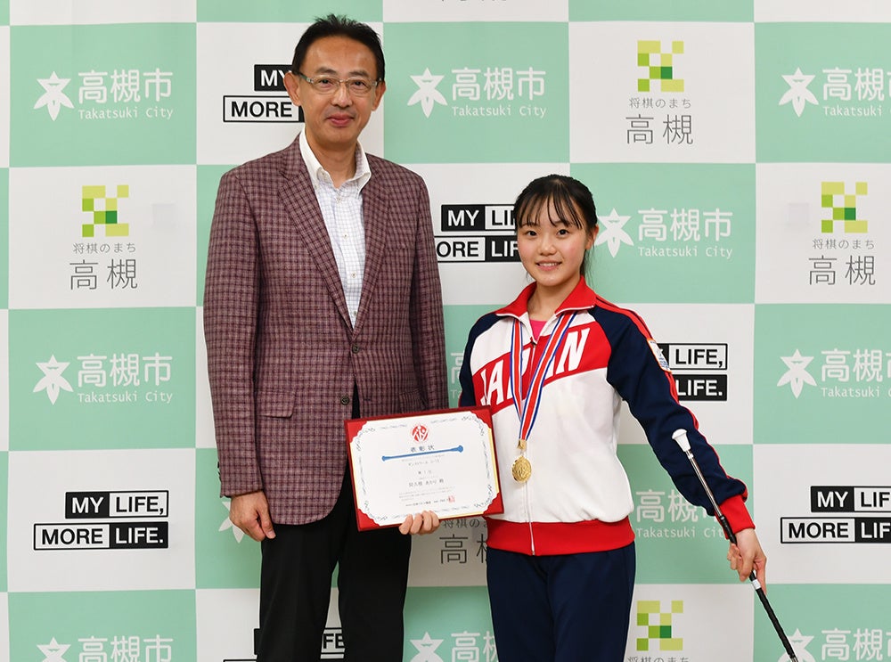 高槻市出身の阿久根あかりさんがバトントワーリングの世界大会出場を市長に報告