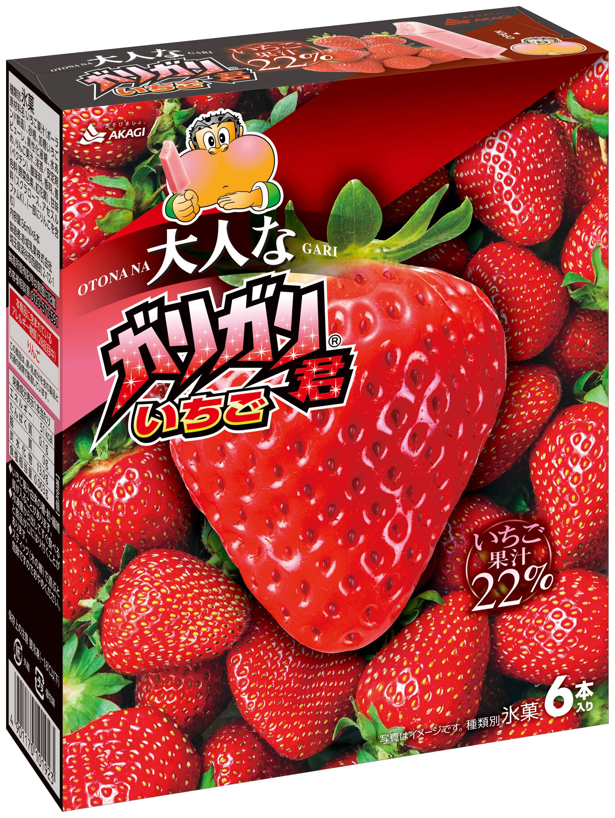 「大人なガリガリ君いちご」は、いちごアイスの中に、ガリガリ食感のジューシーないちごかき氷を入れたアイスキャンディーです。いちご果汁22%使用の本格的ないちごの風味をお楽しみいただけます。