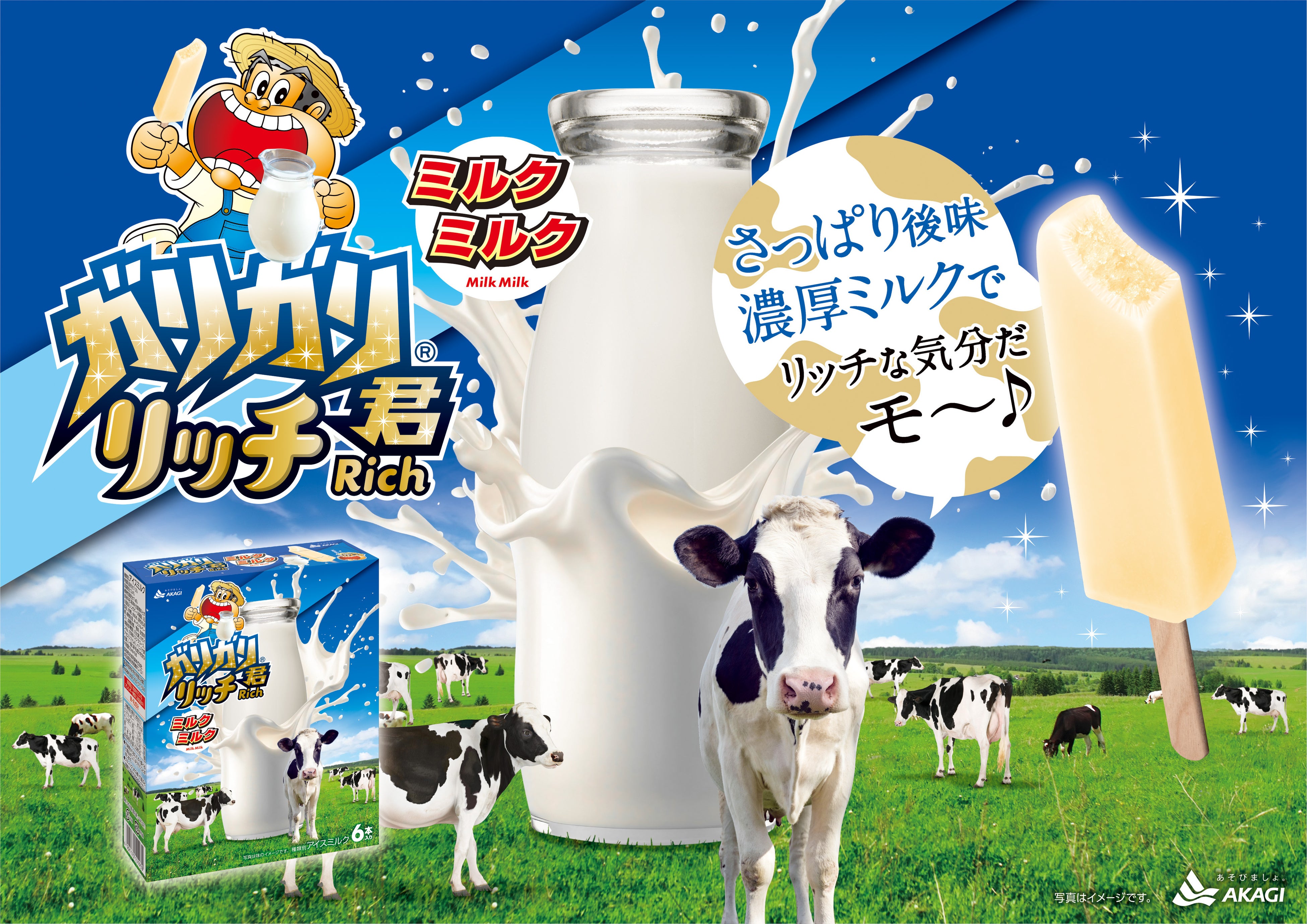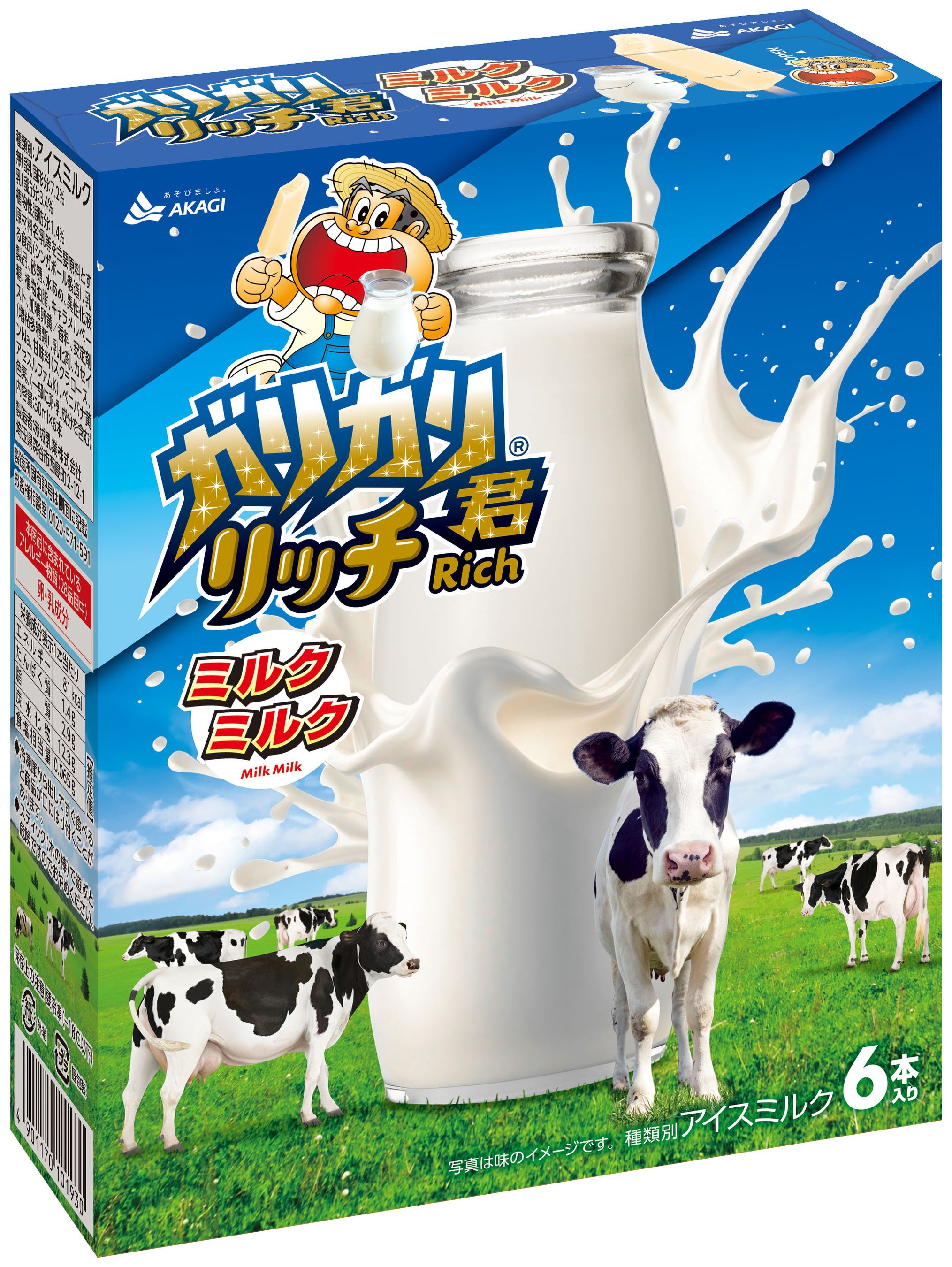 「ガリガリ君リッチミルクミルク」は、ミルクアイスの中に、ガリガリ食感の濃厚なミルクかき氷を入れたアイスキャンディーです。