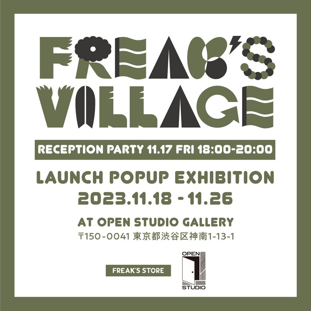 ローンチに併せ、FREAK'S STORE渋谷併設ギャラリーOPEN STUDIOにて、11月18日(土)~11月26日(日)の期間ではFREAK'S VILLAGE POPUPを開催! OPENを記念して、11月17日(金)18時からレセプションを開催いたします。