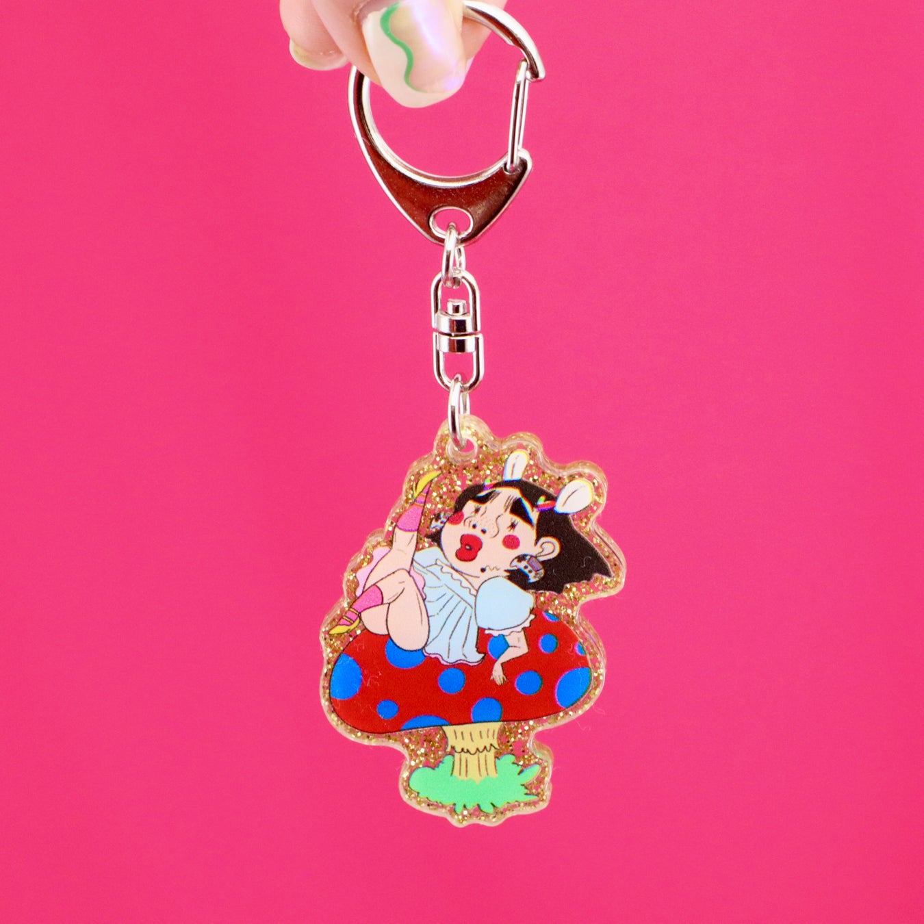 ラメ入りのアクリルでキラキラと光るキーホルダー。