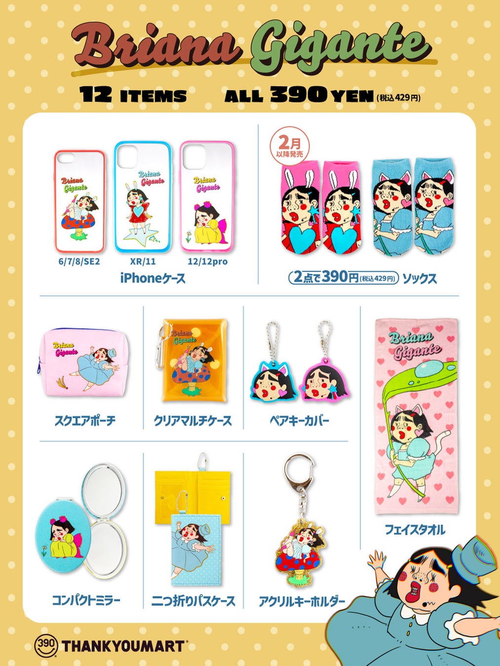 カワイイが集まる店内全品390円(税込429円)のショップ「サンキューマート」を運営するエルソニック株式会社は、YouTubeで話題のショーガール『ブリアナ・ギガンテ』さんとのコラボ商品を1月中旬より全国のサンキューマートで入荷次第順次販売を開始いたします。全アイテムがサンキューマート限定『ブリアナ・ギガンテ』さん本人の描き下ろしデザインです。