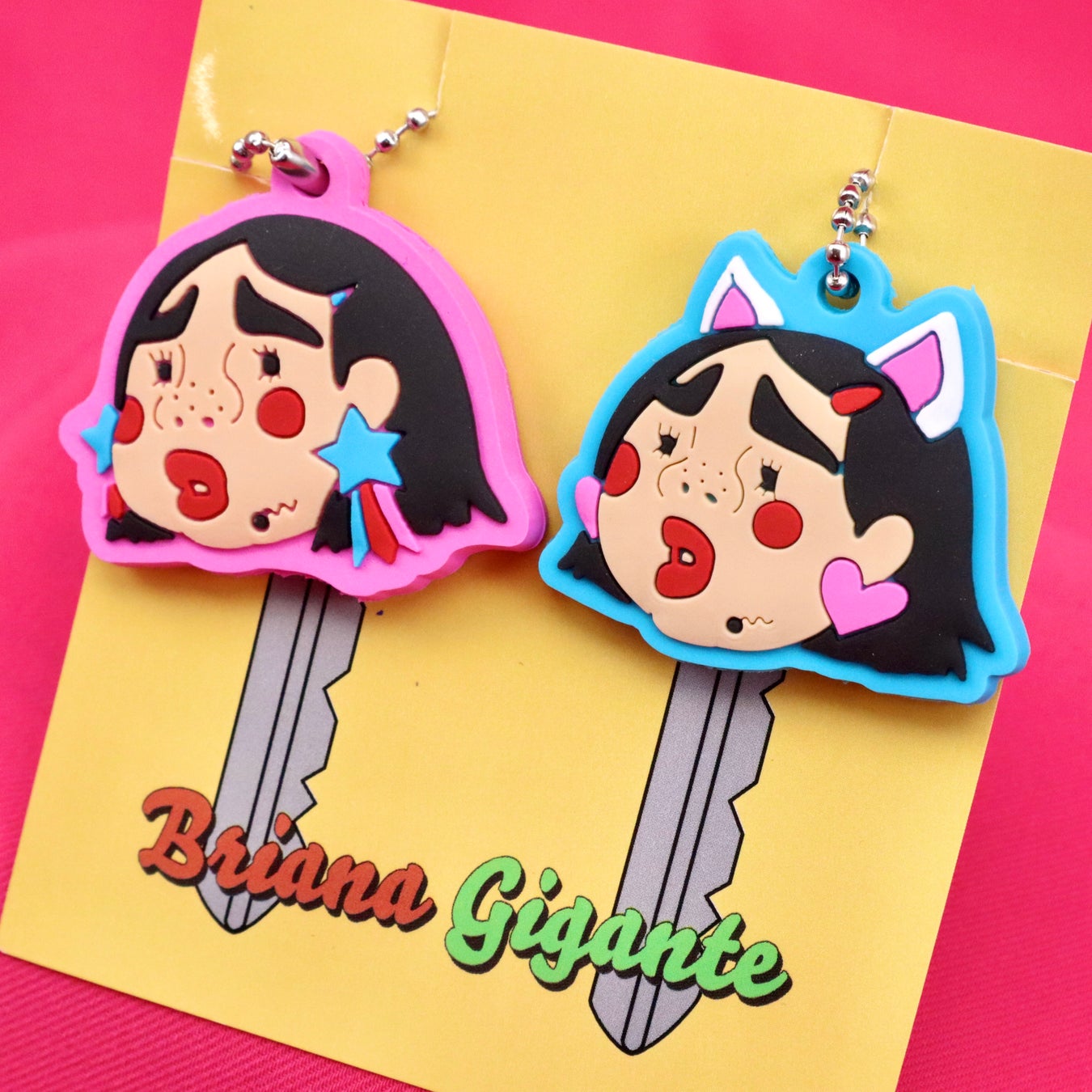 友人や恋人とペアで持ち歩ける!ポップなイヤリングと猫耳を付けたブリちゃんが可愛いキーカバーです。