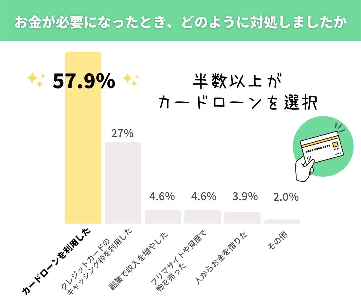 57.9%の方が「カードローンを利用した」と回答しており、半数以上がカードローンを選択したという結果となりました。