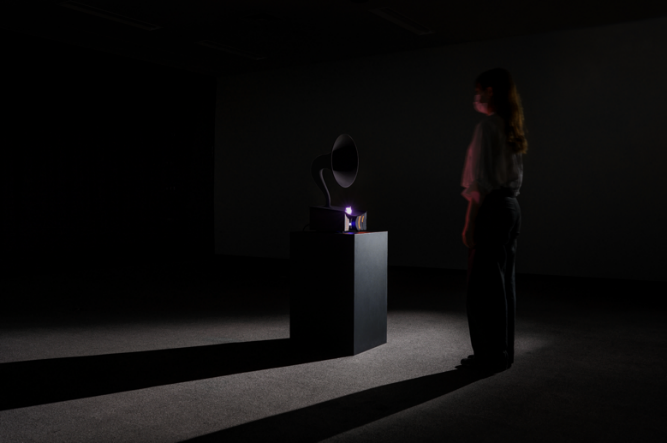 今回の作品展示では、量子力学から「ブラックホール情報パラドックス」を考えてみると、いつか、宇宙の彼方に実在するブラックホールに私たちの声を保存するような未来が訪れるかもしれない、という未来の可能性を体感いただける内容となっています。