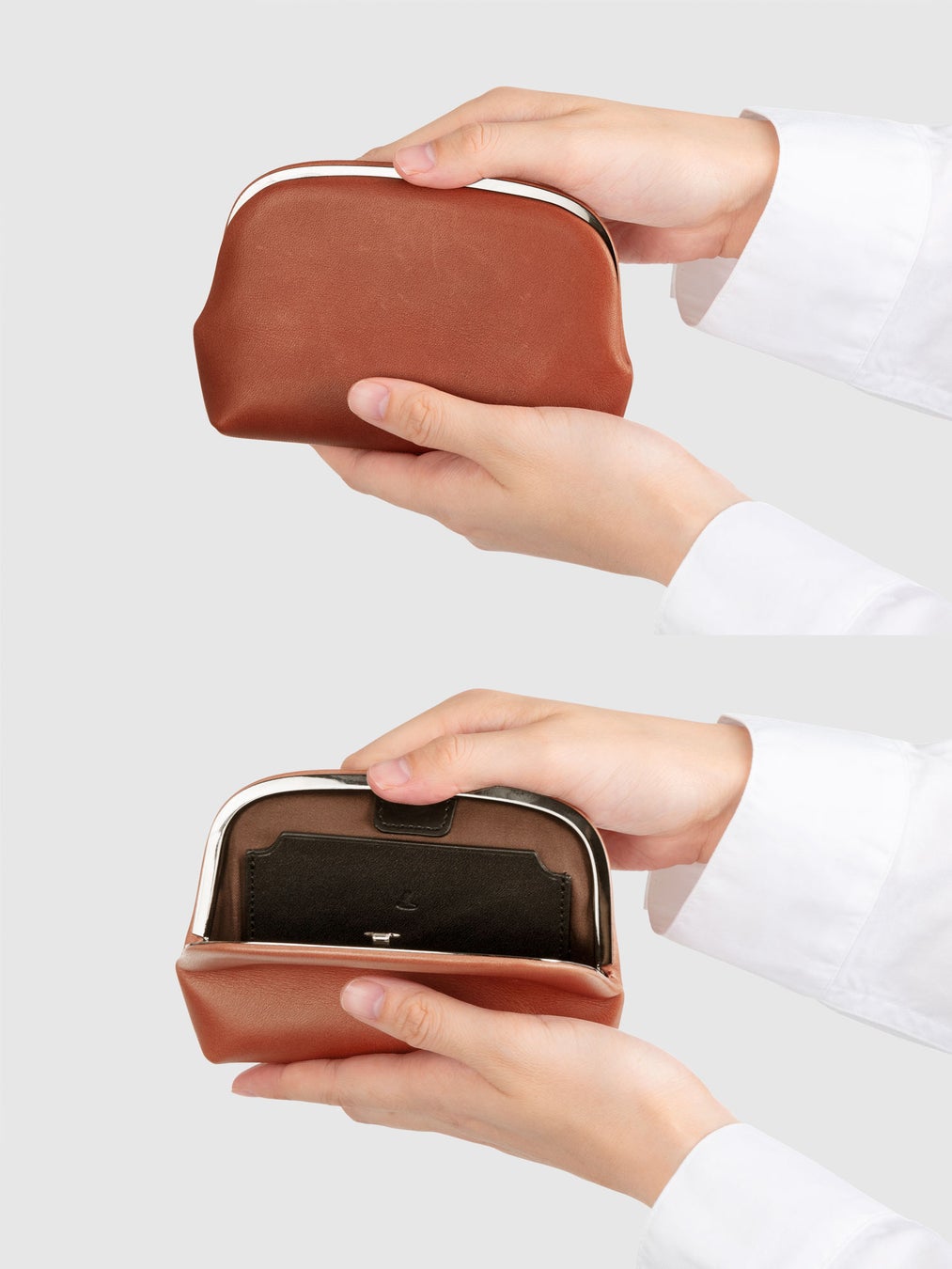 手のひらで味わえる、ころんとしたサイズのがま口。通常のがま口にあるつまみをなくしたシンプルなデザインです。ふっくらとした立体感のある形は、マチ付きで、中身が見渡しやすい設計。小銭やアクセサリーなどをコンパクトに持ち歩けます。