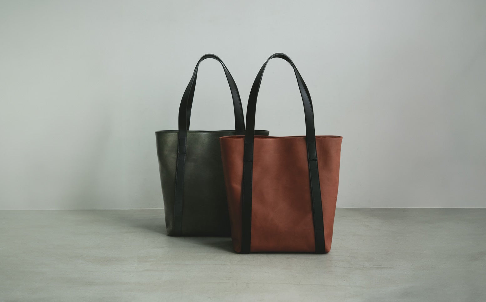 新製品には、鉄染と弁柄(べんがら)染を採用し、日本の美に通じるクリエーションを目指しました。渋く豊かな深緑の色合いを楽しむ鉄染、奥行きのある優しい赤が魅力の弁柄染。いずれも日本で古くから用いられており、日々の暮らしに溶け込んできた彩色方法です。今回のコレクションでは、これらの手法で染めた革を贅沢に使用し、使い方に合わせて豊かに色味と表情を変えるエイジングを愉しみながら、オンオフ問わず愛用できる製品に仕上げています。
