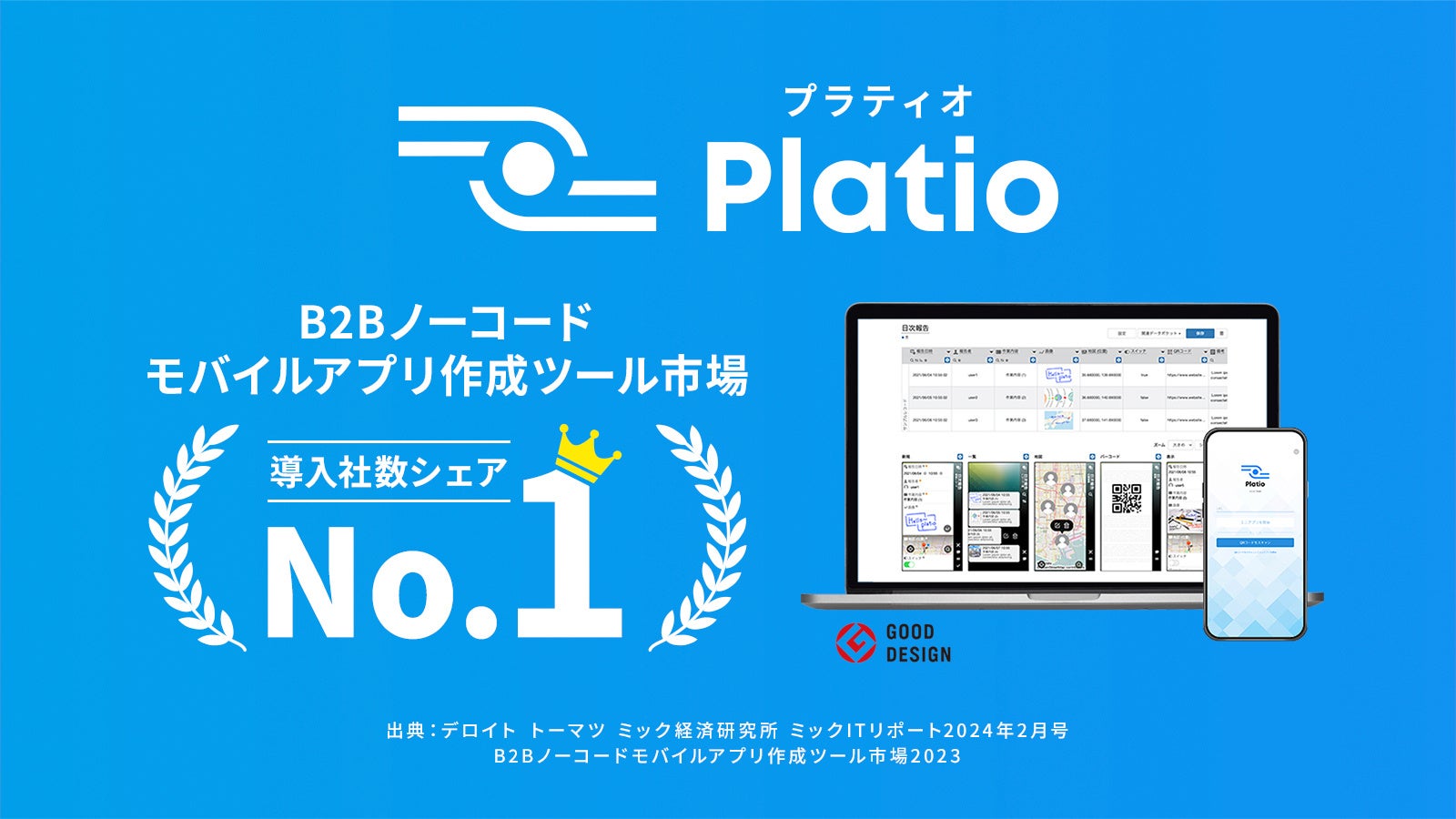 市場調査レポート「B2Bノーコードモバイルアプリ作成ツール市場」で「Platio」が導入社数シェアを含む4つのカテゴリでNo.1を獲得
