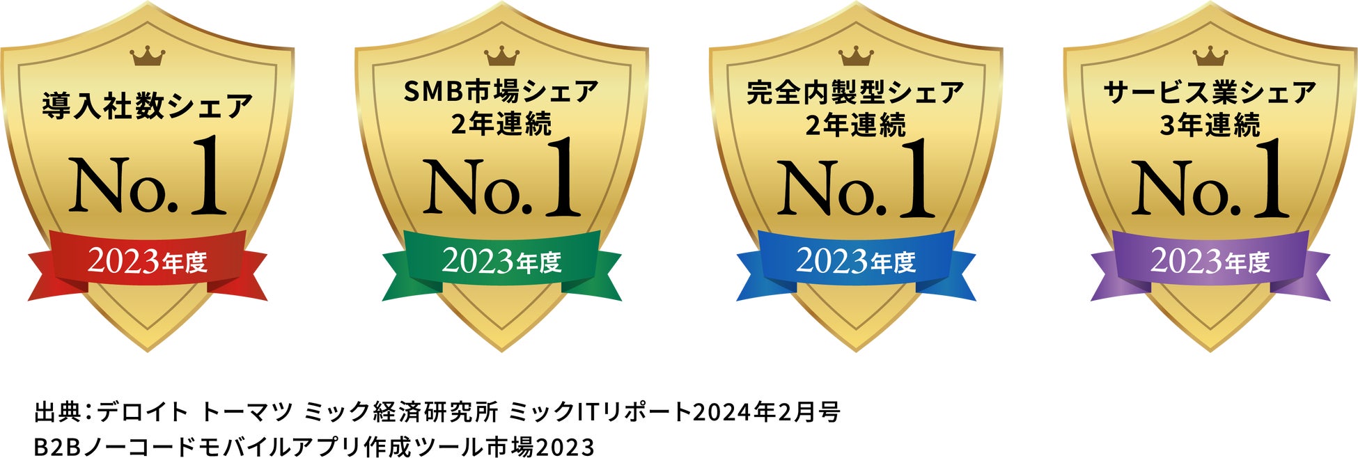 これにより、サービス業や製造業に加え、建設・運輸業からの受注が拡大したことから、①SMB市場、②完全内製型、③サービス業のそれぞれのシェアNo.1に加え、初のB2Bノーコードモバイルアプリケーション作成ツール導入社数での市場シェアNo.1を獲得しました。