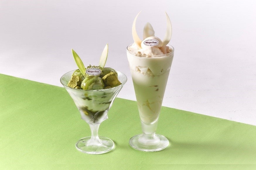 ハーゲンダッツ『グリーンティー』のアイスクリームを使用した、緑の風の心地よさを演出したパフェです。抹茶わらび餅やカリッとした食感の抹茶チョコレート、とろけるソースにシロップなど抹茶のさまざまな美味しさを重ねました。