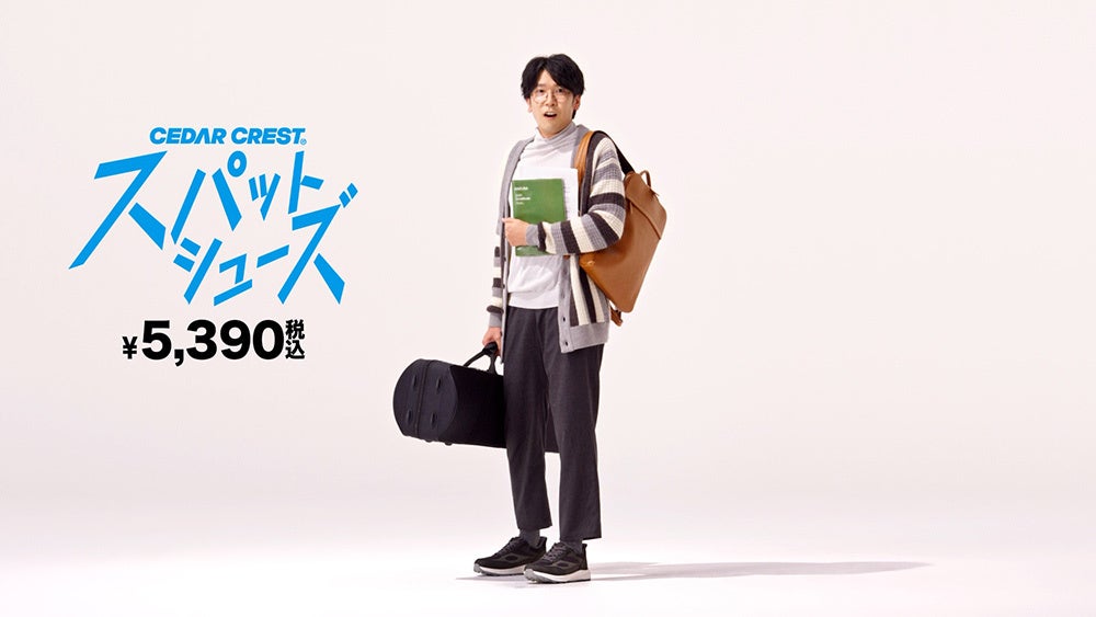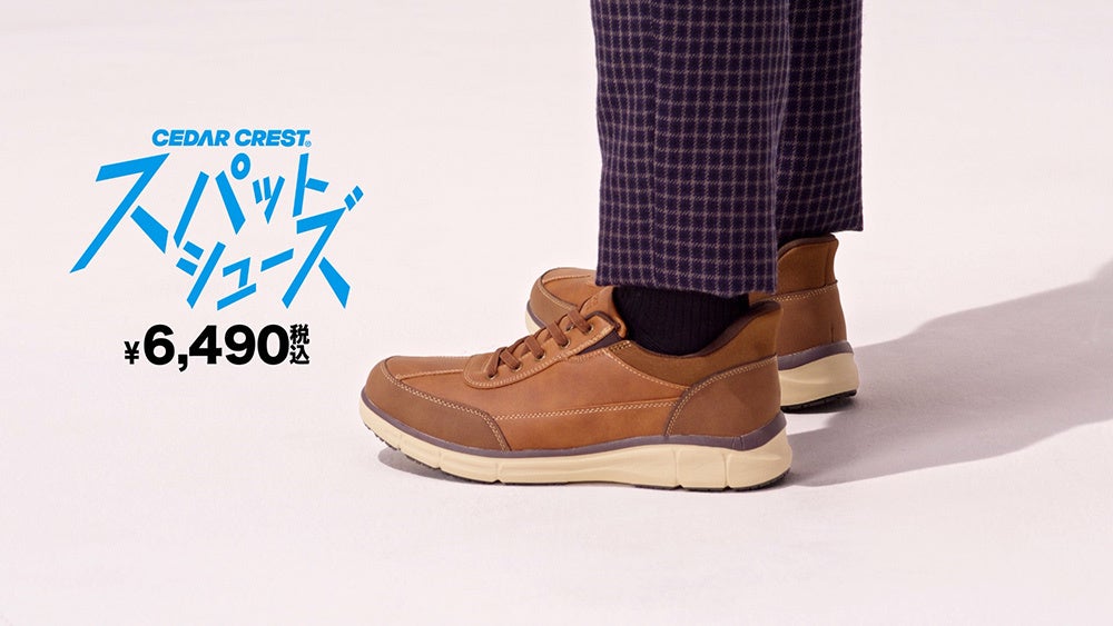 今回の注目は、現在大人気の、手を使わずに立ったままスパッと履けるCEDAR CREST「スパットシューズ」の新作です。男性篇では、エアソールタイプのCC-60910が登場、「スパットシューズ」の履きやすさはそのままに、ソールのかかと内側に突起を設けることで、脱ぎやすさにも工夫が加えられました。
