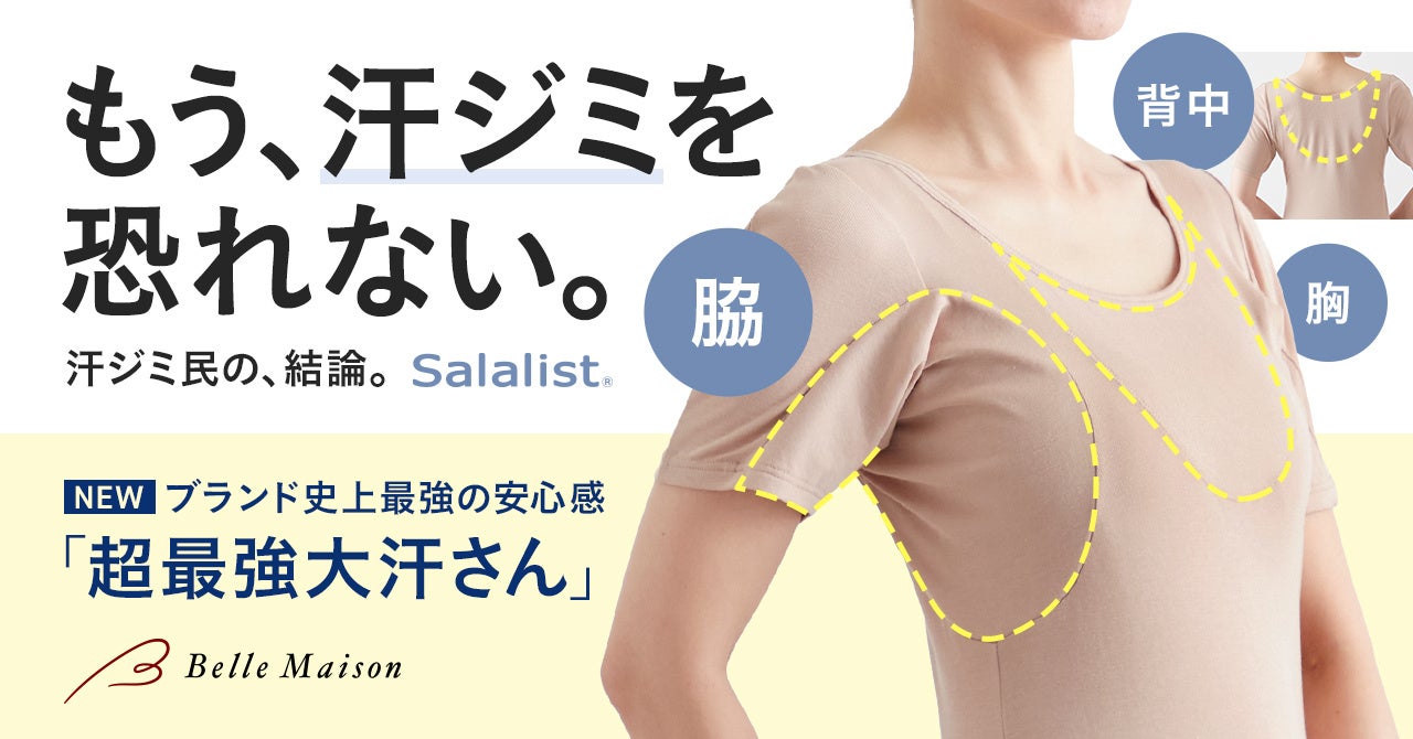 株式会社千趣会(本社:大阪市 代表取締役社長:鈴木聡 以下千趣会)の通販事業ベルメゾンは、汗ジミを防ぎながら汗のベタつきやニオイ、暑さなどの様々な汗悩みをケアし、快適に過ごせるよう開発した累計販売枚数985万枚突破※1の汗対策インナーブランド「Salalist(サラリスト)🄬」より、新作15商品を2026年2月25日(水)に発売します。(https://www.bellemaison.jp/)