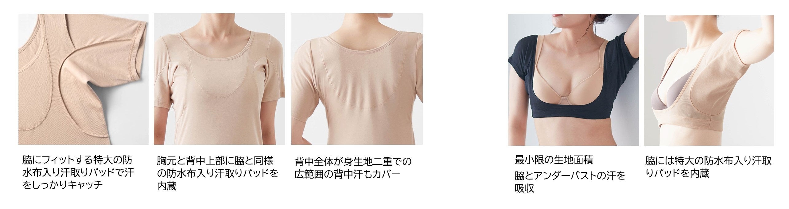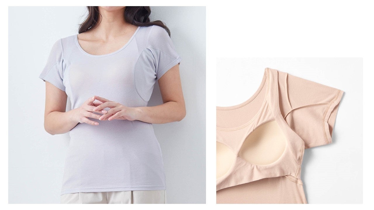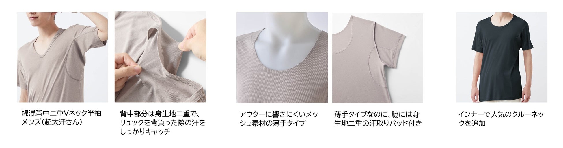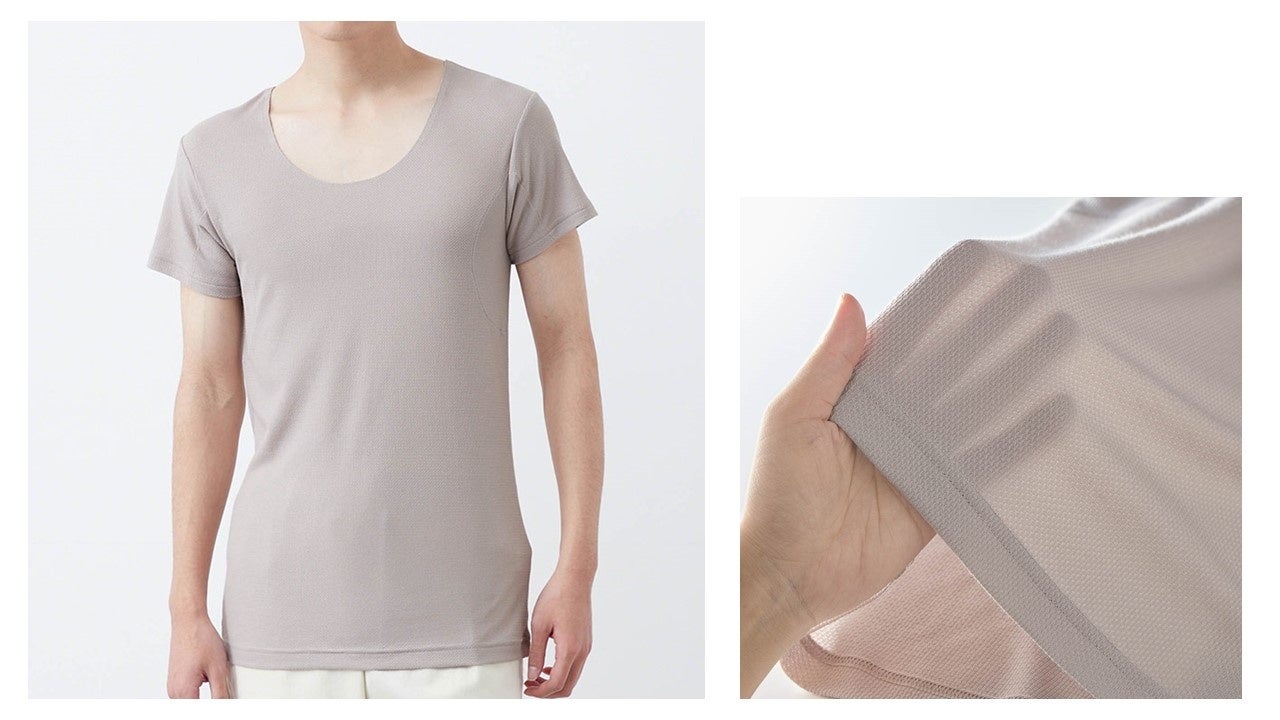 近年、日傘などの暑さ対策への関心の高まりを背景に、男性の間でも身だしなみやケアへの意識が高まっています。これを受け、リュックを背負った時などにできる汗に対応した背中部分が二重になっているインナーや、アウターに響きにくい薄手のメッシュ素材のインナー、Tシャツの襟ぐりギリギリまで汗をカバーするクルーネックタイプなどメンズ向けに3商品を新たに拡充し、男性特有の汗悩みにも応えていきます。