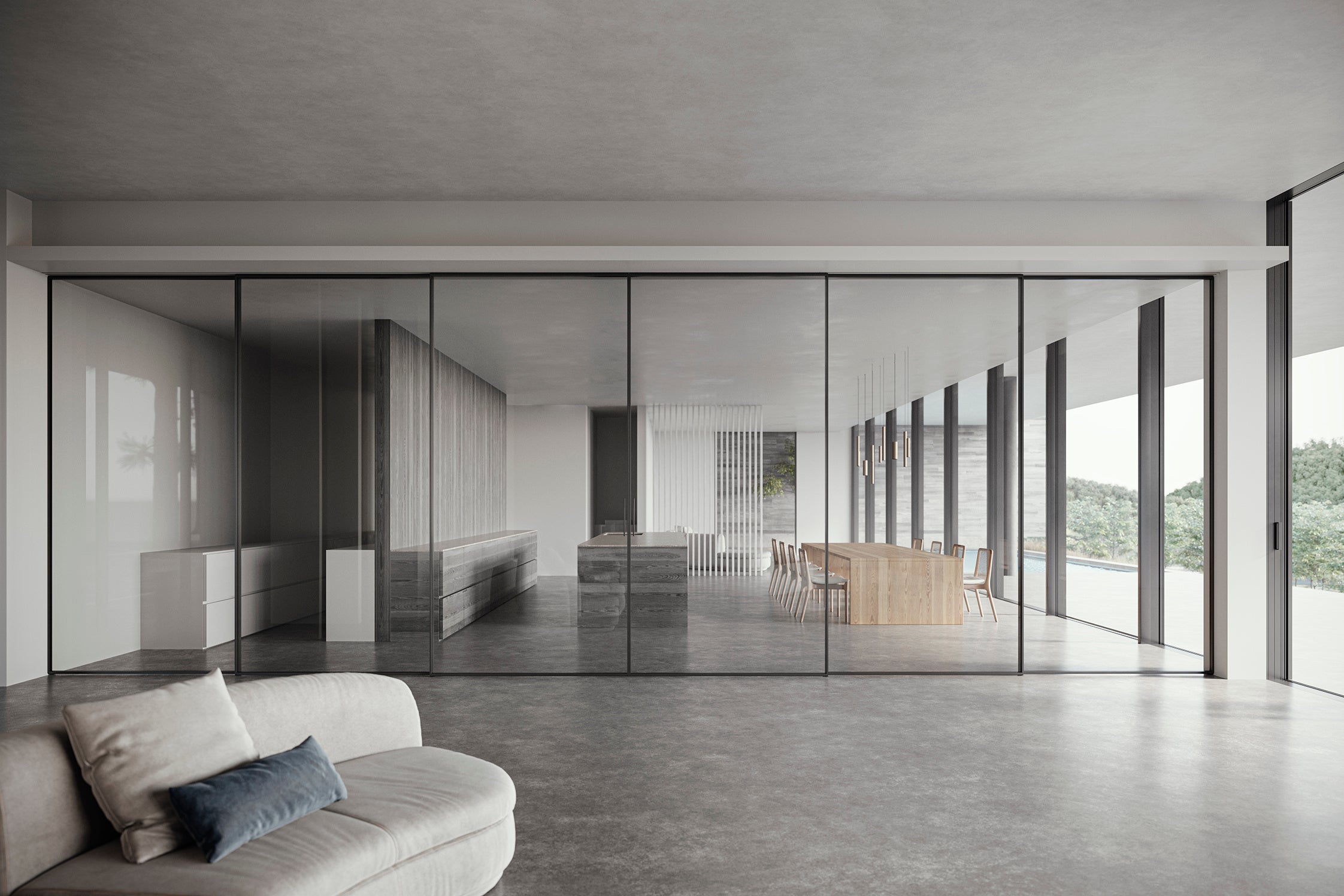 また、受賞対象の中で、特に高い評価を得た100点を選出する「グッドデザイン・ベスト100」には、LIXILのハイエンドブランドNODEAから、空間をシームレスにつなぎ、開放的な空間設計にきめ細かくお応えする幅約12m、高さ3m、フレーム幅が極細12mmのインテリア引戸「GLASS R」が選ばれました。