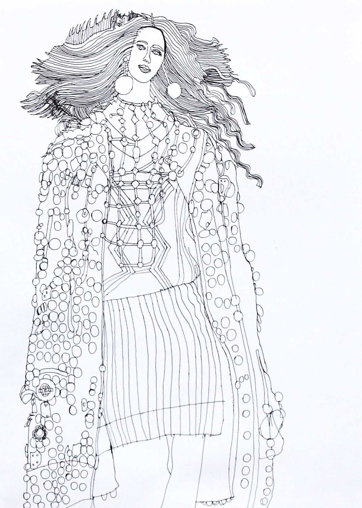 人物、風景、食品などを題材に制作。線画が定番のスタイルだが、最近では着色をすることも多くなってきている。モチーフは身近な静物が多く、日常の風景の他に図鑑やビジュアルのきれいな雑誌やファッション雑誌からインスピレーションを得て、独自の視点と構図で一部分を切り取って描く。作品は全て下書きなしのフリーハンドです。