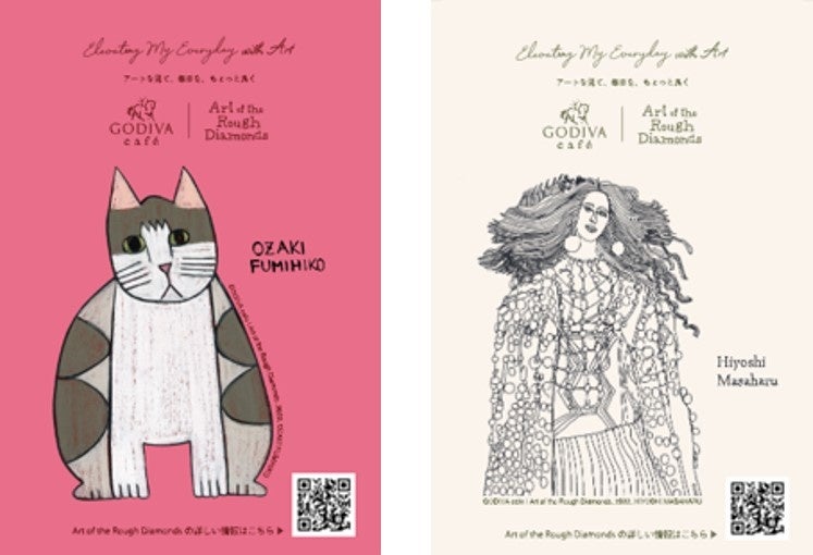 アートイベント、GODIVA café「Elevating my everyday with Art」は、12月3日の国際障碍者デーに合わせて、2022年12月3日(土)より2023年1月9日(月)までGODIVA café Nihonbashiで実施します。店内にArt of The Rough Diamondsの尾崎文彦氏と日吉雅治氏の作品を展示するほか、12月6日(火)より、オリジナルコラボレーションシールを1オーダーにつき1枚プレゼントします。同イベントは、GODIVA café Nihonbashi開催後は、2023年2月17日(金)より3月31日(金)までGODIVA café Futakotamagawaにて実施予定です。