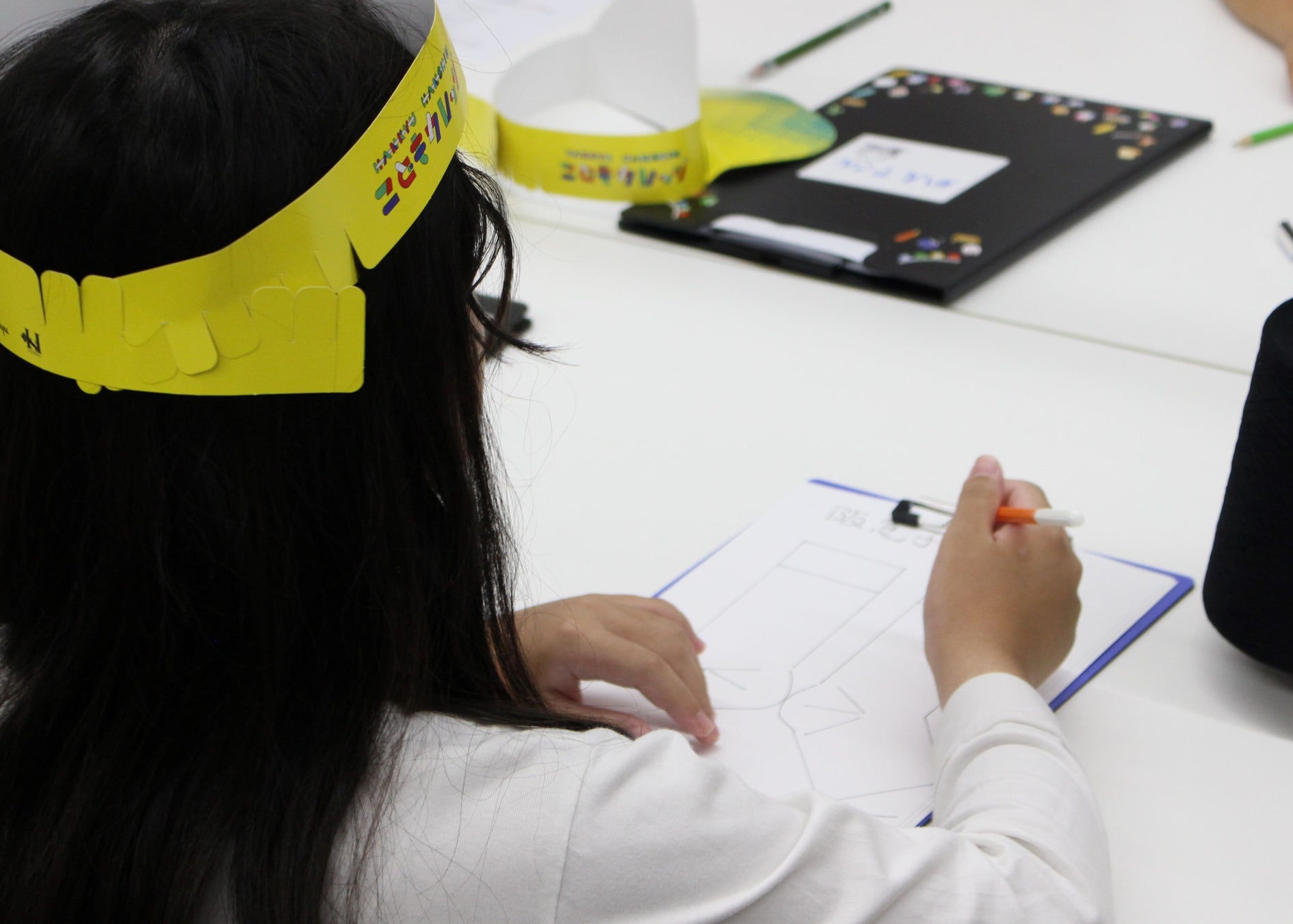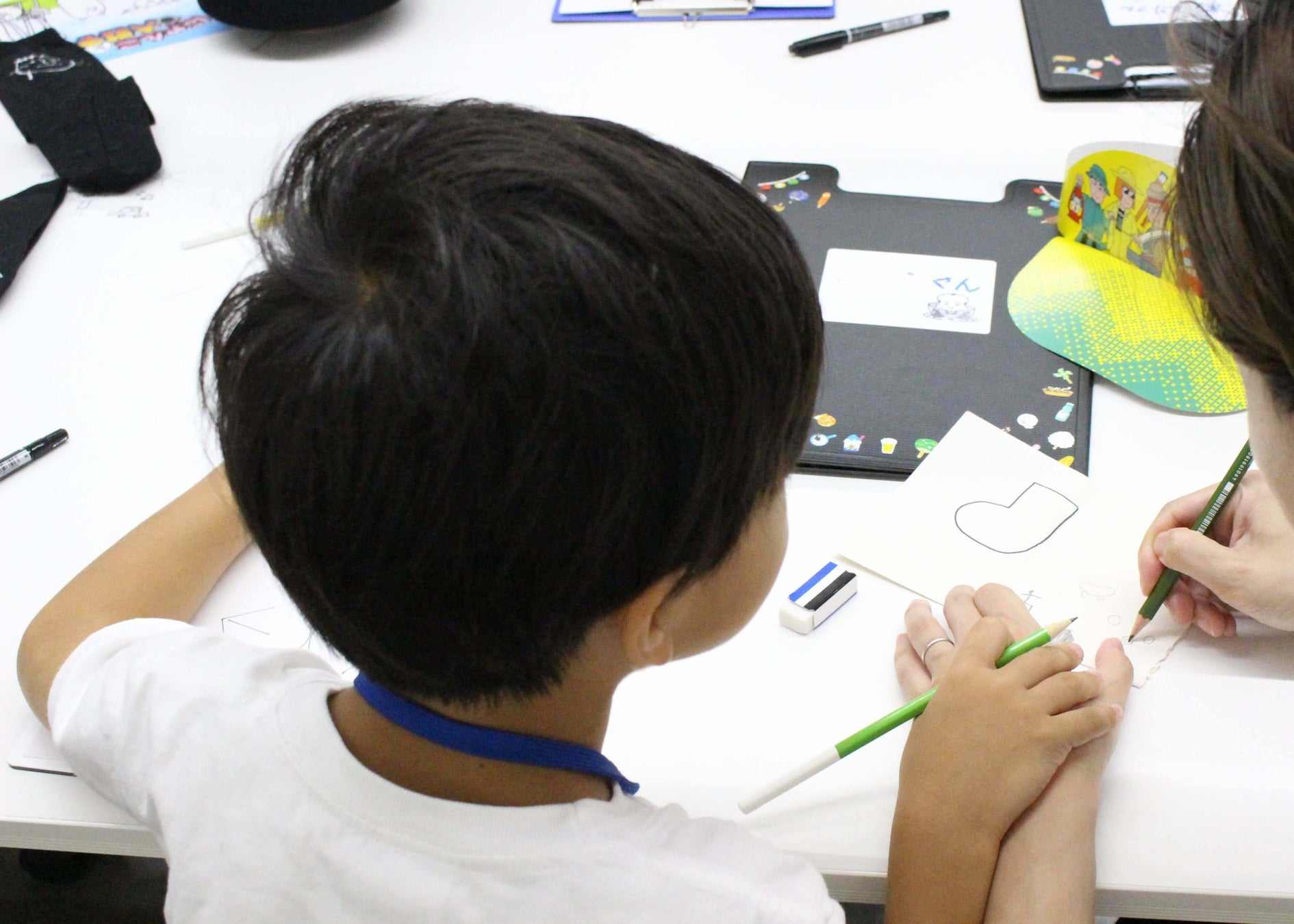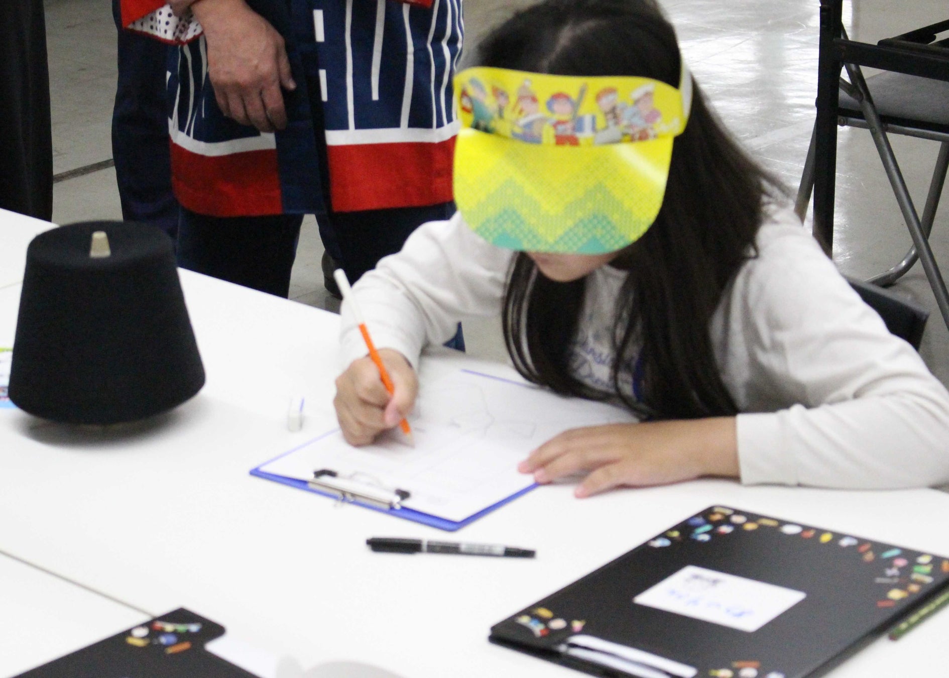 ご応募の中から選ばれた参加者は2名 ※注。体験講座当日、おふたりには靴下の製造について学んでいただいた後、靴下や口紙をデザインいただきました。その後おふたりが選定した糸や色、デザインを元にした靴下を当社にて製品化。完成した商品は8月3日(土)より阪急梅田本店にて販売されます。なお、8月4日(日)には、お子さまご自身が店頭に立ち、自らがデザインした商品を販売することになっており、この2日間の講座を通して、靴下のデザイナーと百貨店の靴下バイヤーというふたつの職業体験をしていただきます。
