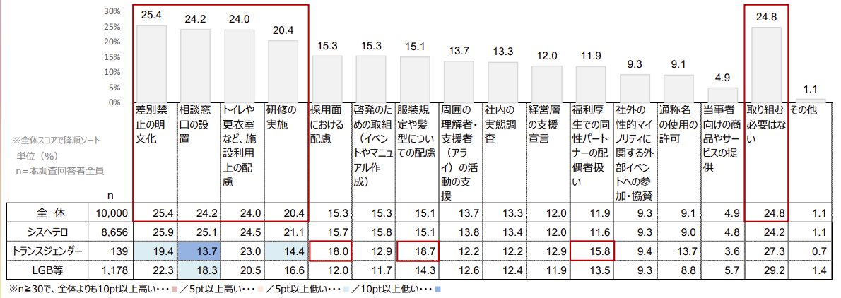 LGBTQ+当事者が職場に求める対策ランキング
