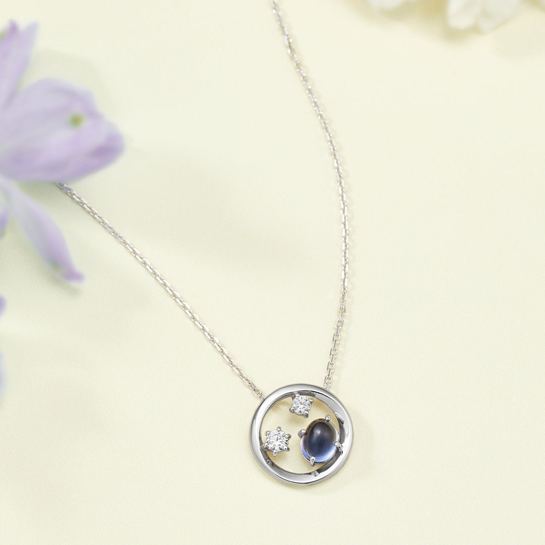 美しいぷっくりとしたフォルムであしらったアイオライトは、目標に向かって前へ進む方の背中を後押しするよう願いを込めました。