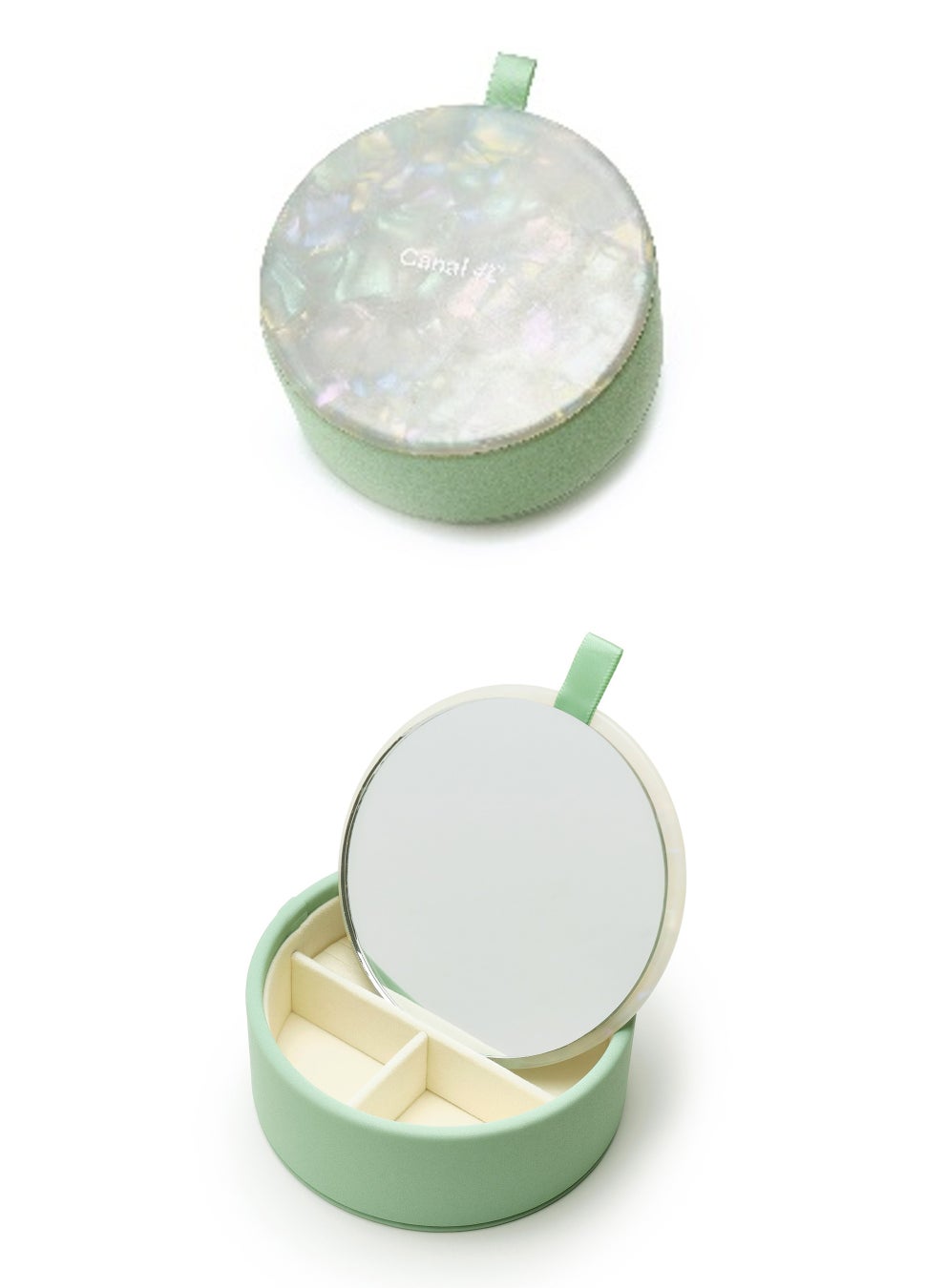 小物入れとしてはもちろん、ミラーをケースに立て掛けて鏡としても使える便利なデザインです。