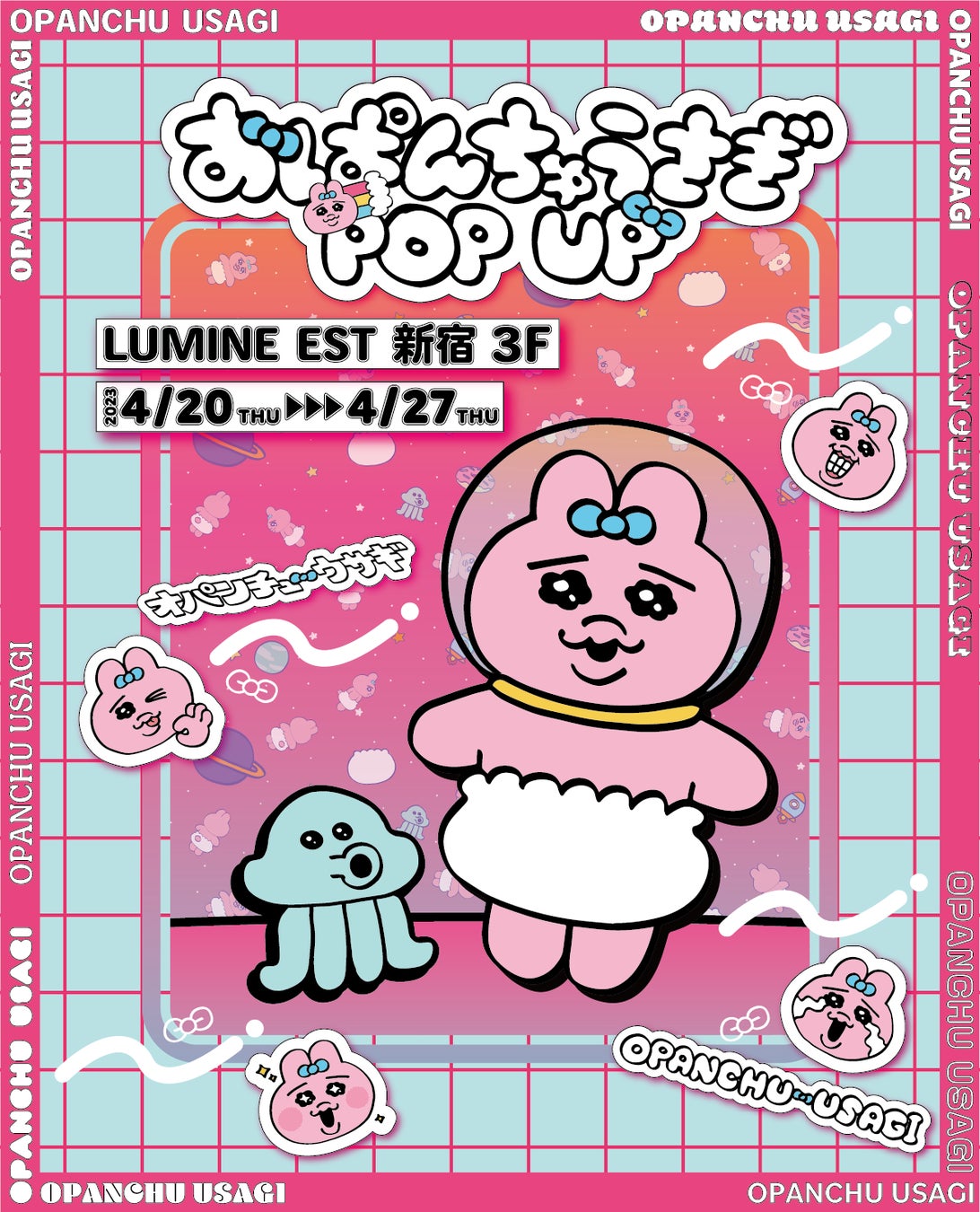 「おぱんちゅうさぎ」のコラボカフェやポップアップが楽しめる「可哀想に!meets ルミネエスト新宿」が4月20日より開催決定!