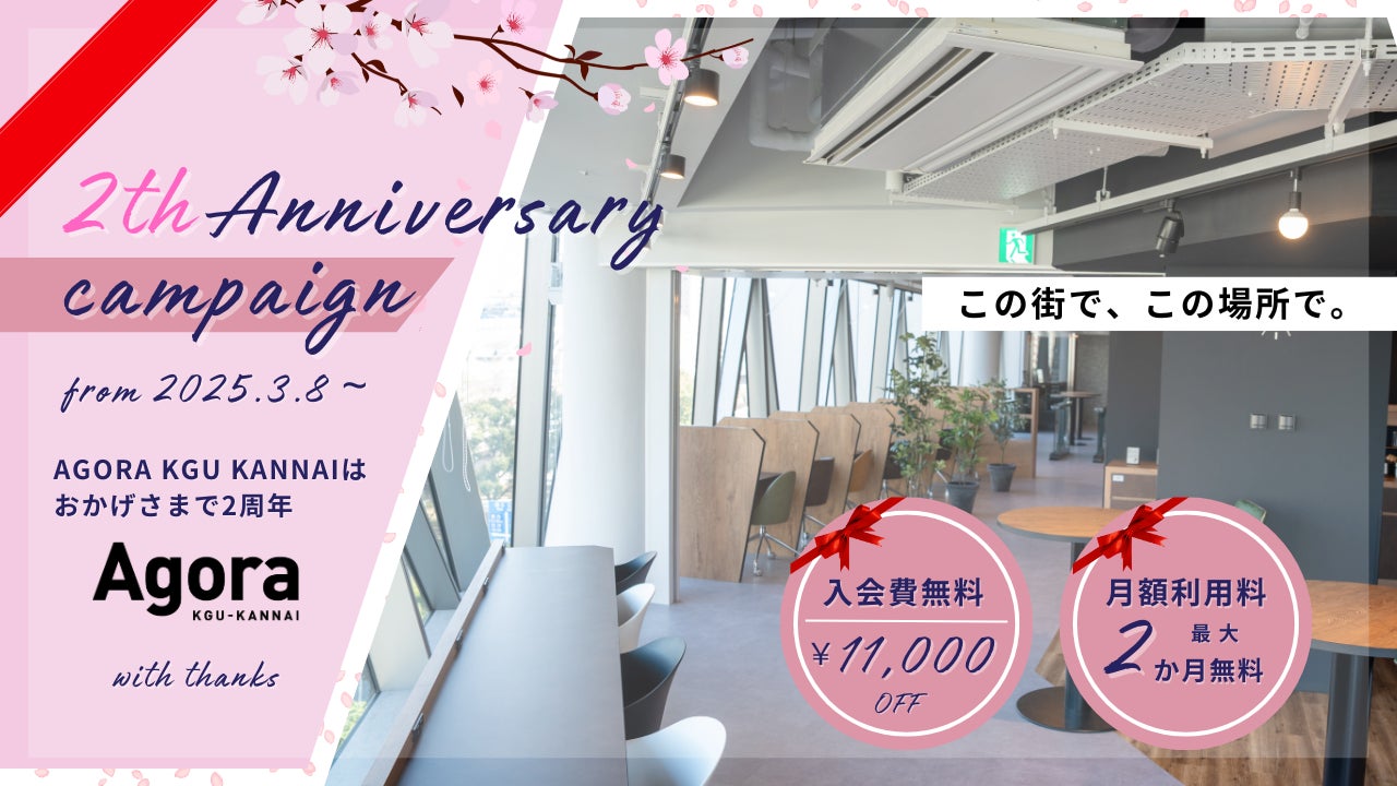 【オープン2周年記念】キャンペーン開催!入会費無料付「春のとくトクキャンペーン」3月8日スタート!コワーキング&シェアオフィスAGORA KGU KANNAIさらなる地域の事業活性化拠点を目的として