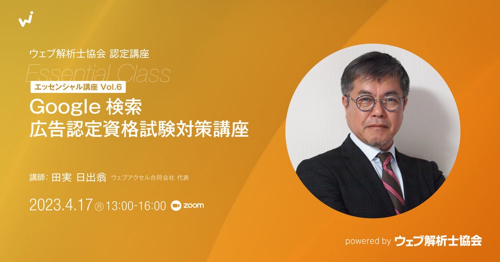 2023/4/17(月)13:00 - 16:00 【エッセンシャル講座 Vol.6】Google 検索広告 認定資格試験対策講座