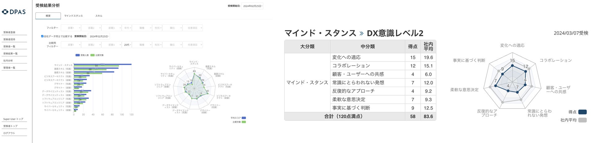 更に、2024年8月には、DX推進力の可視化アセスメント「DPAS」を導入し、これまでの学習の成果や今後のDX推進に向けた現状把握をすべく、スキルの可視化を行いました。