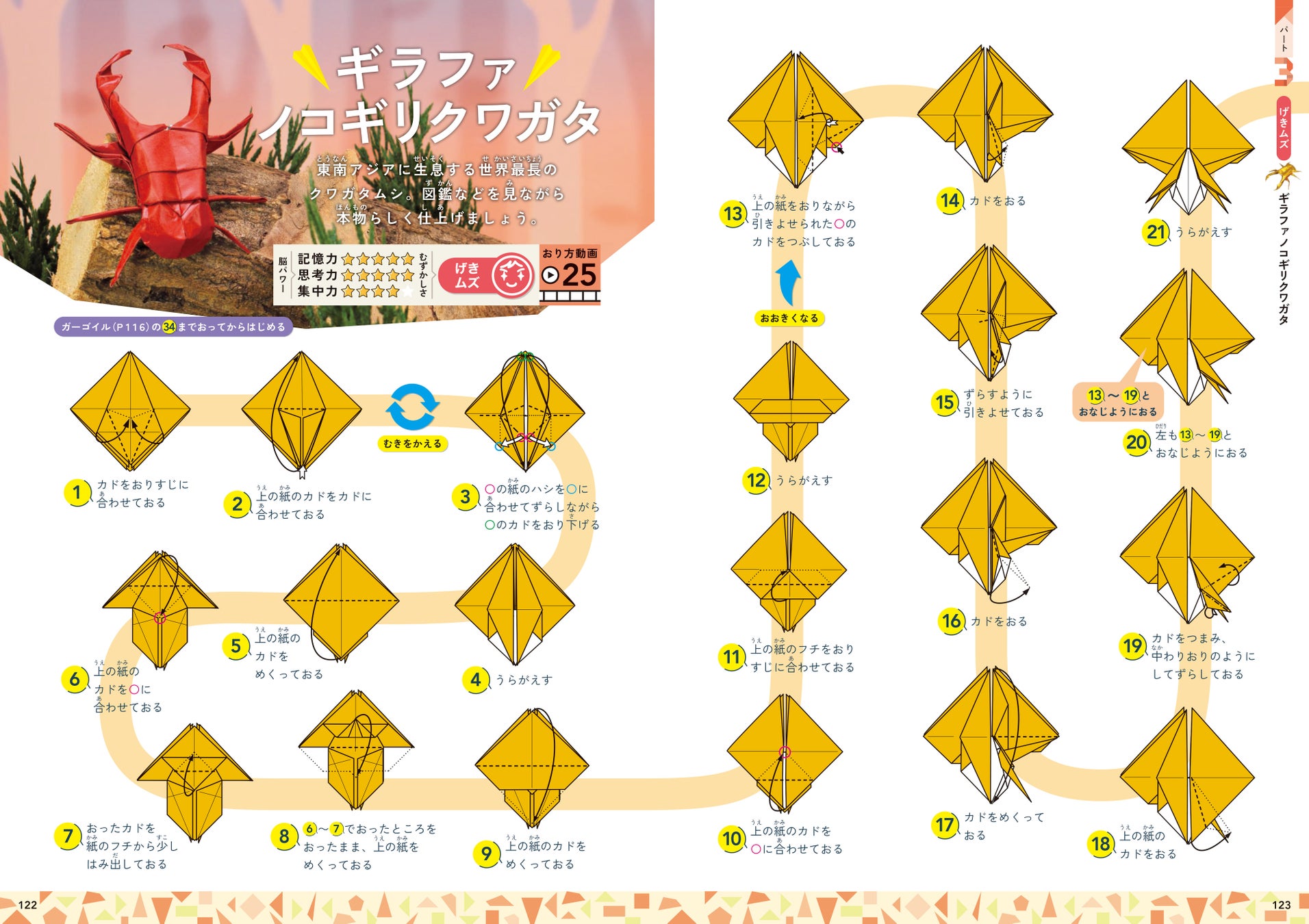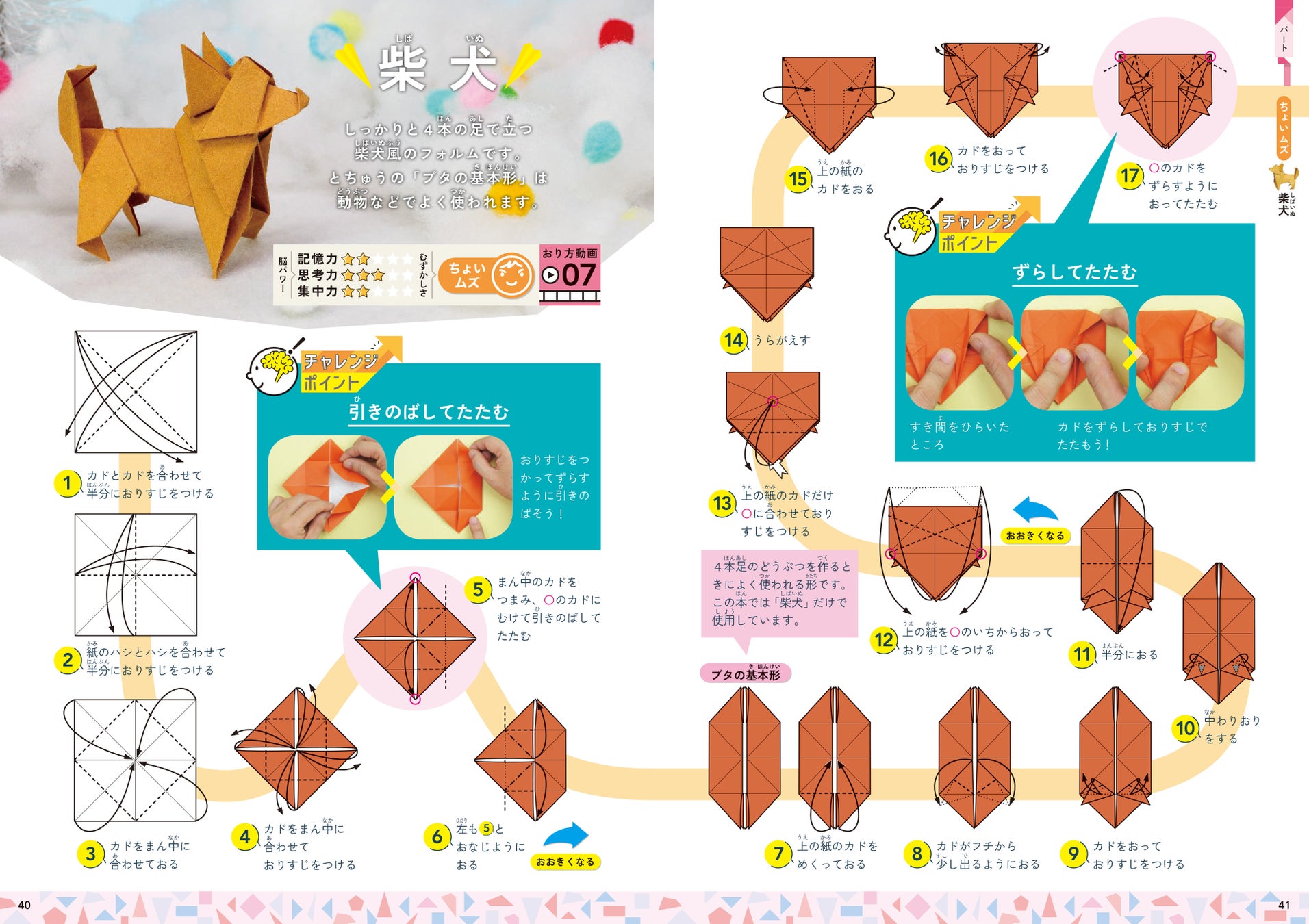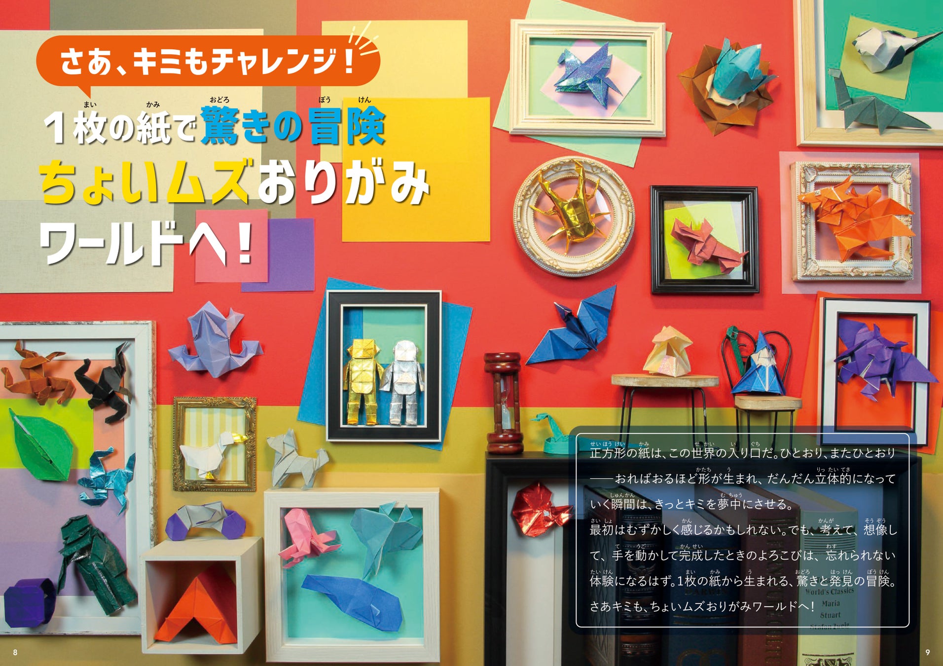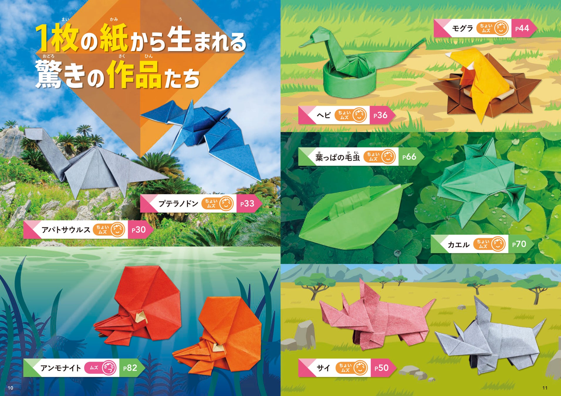本書の作品は、すべて折りごたえにこだわった個性的なものばかり。「ちょいムズ入門」「ちょいムズ」「激ムズ」の三段階でステップアップしていくので、初心者の方も楽しくチャレンジができます。