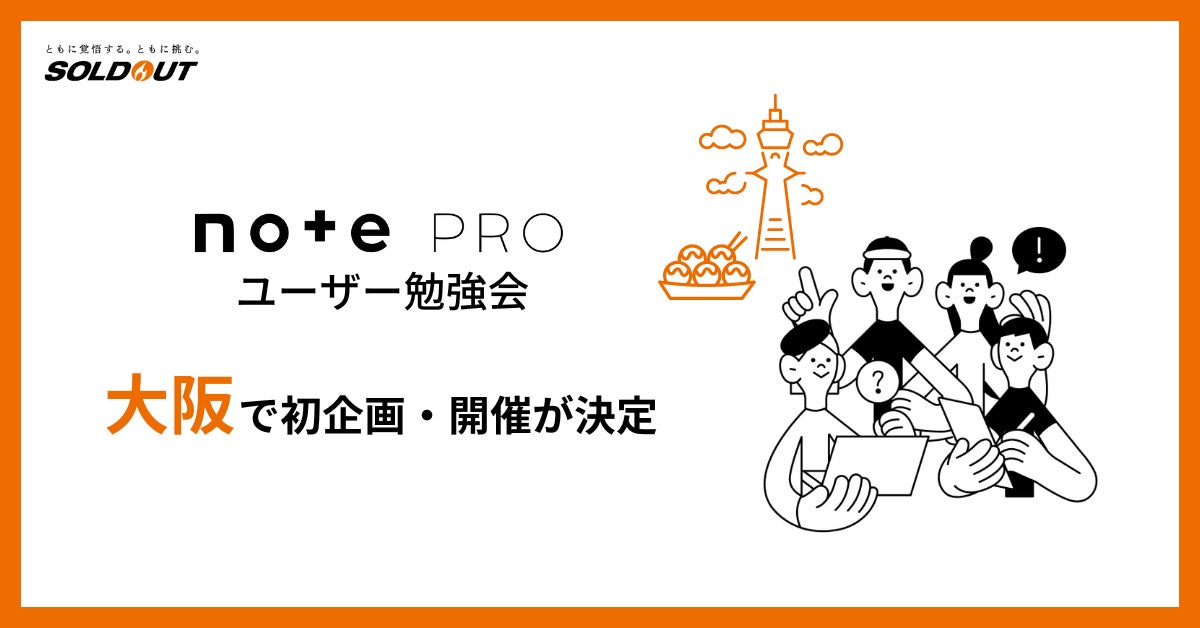 地方を含む全国の志ある中堅・中小企業の成長支援をデジタルマーケティング領域で展開するソウルドアウト株式会社(本社:東京都文京区 代表取締役社長CEO兼CCO:荒波 修、以下「ソウルドアウト」)は、note株式会社(本社:東京都千代田区 代表取締役CEO:加藤 貞顕、以下「note社」)と共催で、オフラインの交流イベントを大阪で開催することをご報告します。