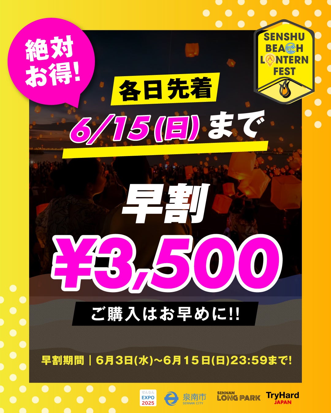 泉南市と株式会社TryHard Japan(大阪市中央区)は、2025年7月5日(土)・6日(日)の2日間にわたり、ランタンを一斉に夜空へ打ち上げる参加型イベント「泉州ビーチランタンフェス vol.6 ~未来への願いを光に乗せて~」を開催します。それに伴い、本イベントのチケット販売を開始いたします。