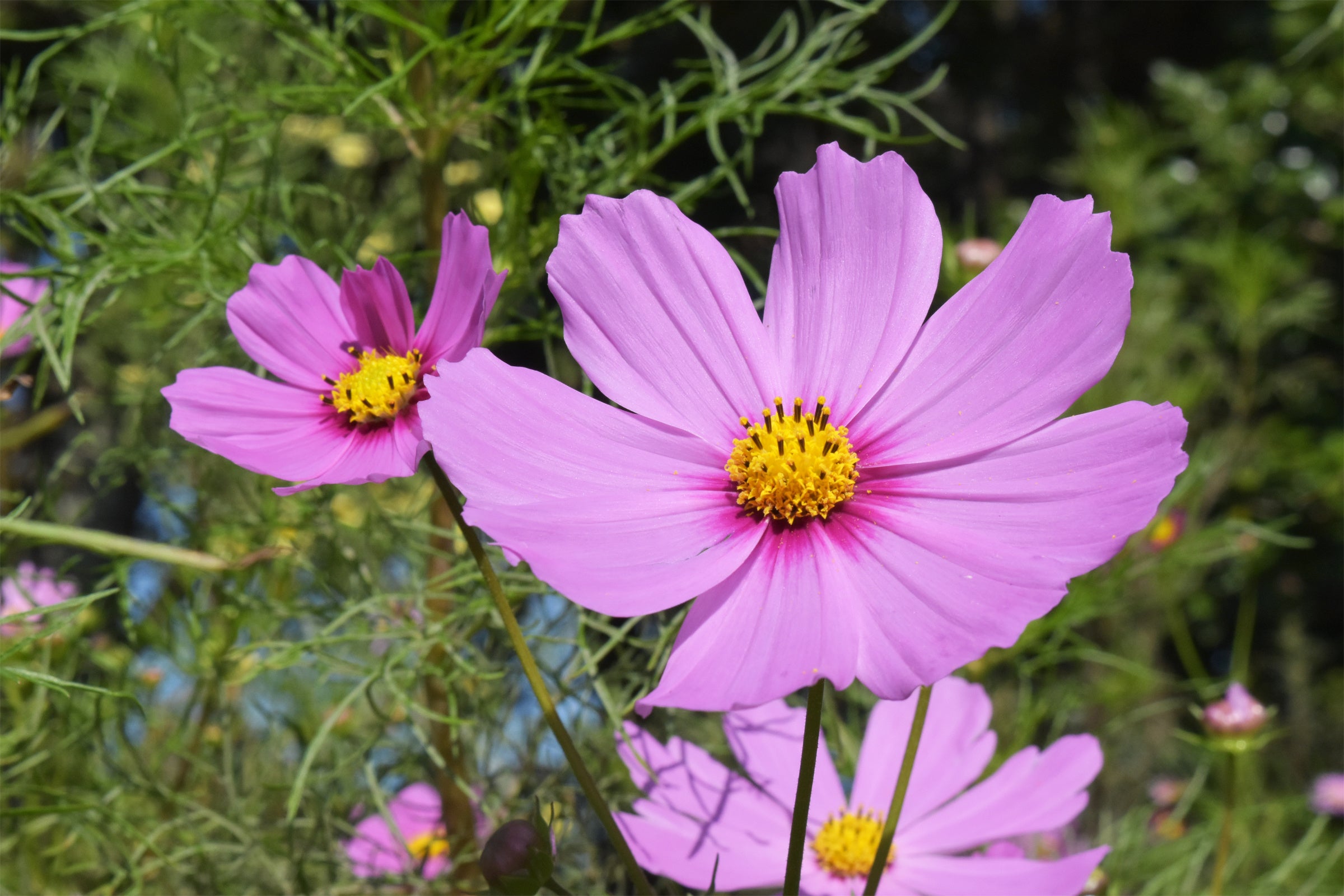 植栽スタッフが、剪定などきめ細かな管理を行い、約6品種のコスモスが次々と開花するように工夫しており、9月上旬~10月下旬までの長い期間にわたって、コスモスの花畑をお楽しみいただけます。