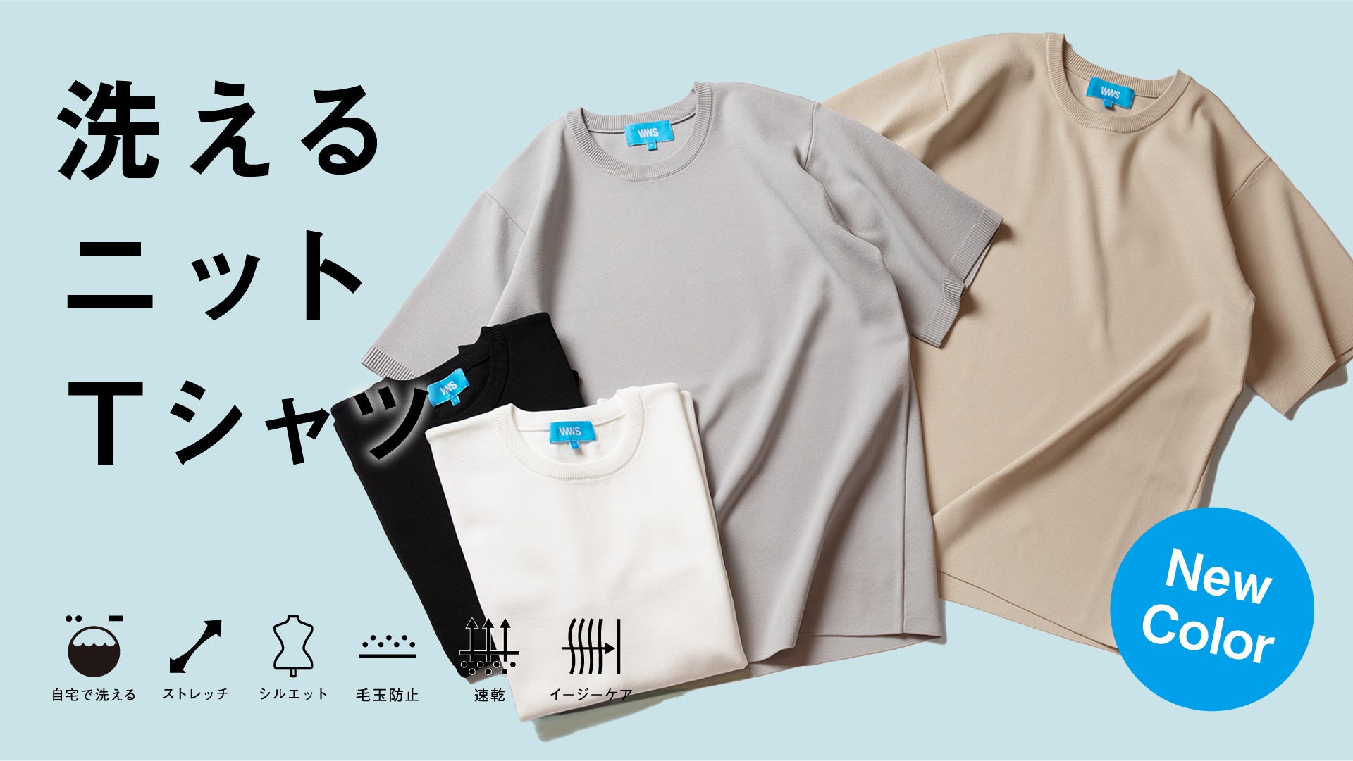 この度、2023年6月7日(水)10:00より、Tシャツとニットの“イイとこどり”「洗えるニットTシャツ」のホワイトとブラックの増産分と新色のアイボリーとライトグレーを発売いたします。4月14日(金)よりWWS公式オンラインストアにて実施していた本商品の先行予約は、開始僅か3日で一部サイズが完売するほどの反響でした。そこで、先行予約開始1週間でホワイトとブラックの増産と、新色としてアイボリーとライトグレーの追加を決定し、6月7日(水)10:00より販売開始いたします。