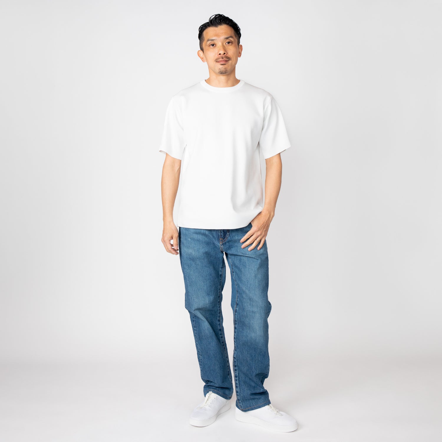本商品は、Tシャツよりも上品な大人のスタイルが叶うように体のラインを拾わない絶妙な厚みと、オーバーサイズ過ぎずジャケットに合わせやすい丈感などのフォルムにこだわりました。ストレッチ、シワ・毛玉・型崩れが起こりにくいイージーケア、吸水速乾、自宅洗濯機で丸洗い可能などの高機能性を備え、かつ柔らかな肌触り・チクチク感ゼロで抜群の着心地を実現しました。