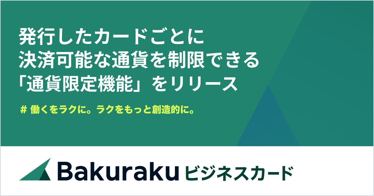 すべての経済活動のデジタル化を目指す株式会社LayerXは、「バクラクビジネスカード」において、「通貨限定機能」をリリースしました。発行したカードごとに決済可能な通貨を制限することで不正利用や意図しない決済を防止でき、これまで以上に安全にバクラクビジネスカードをご利用いただけます。
