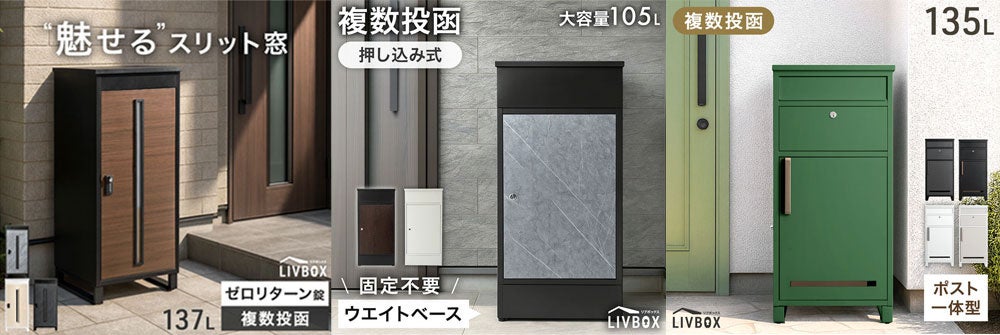 『LIVBOX(リブボックス)』シリーズから、洗練された意匠を備えた宅配ボックス2モデルが新たに加わりました。