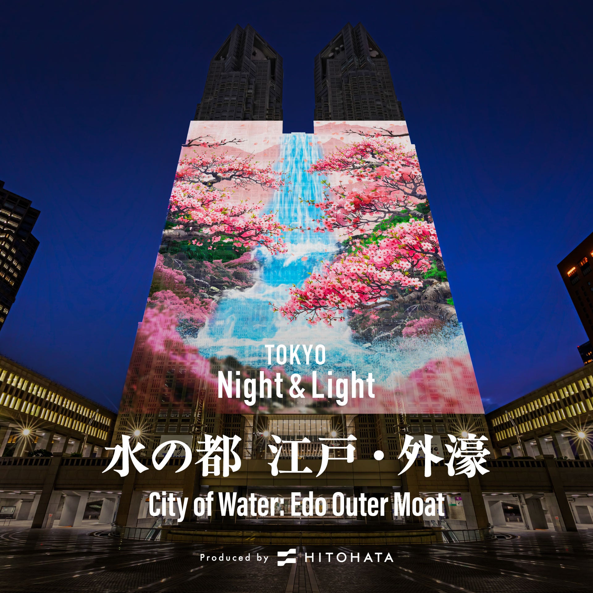 【内容】 「水の都 江戸・外濠 〜City of Water: Edo Outer Moat〜」は「水の都」東京を甦らせる「外濠浄化プロジェクト」の一環として制作した作品で、水の都・江戸の記憶と未来の都市像が重なり合い、新たな物語が生まれるようすや、浮世絵に描かれた滝や水辺の風景、清らかな流れとともに四季の花々が咲き誇る幻想的な世界などを表現した約4分間のプロジェクションマッピングです。