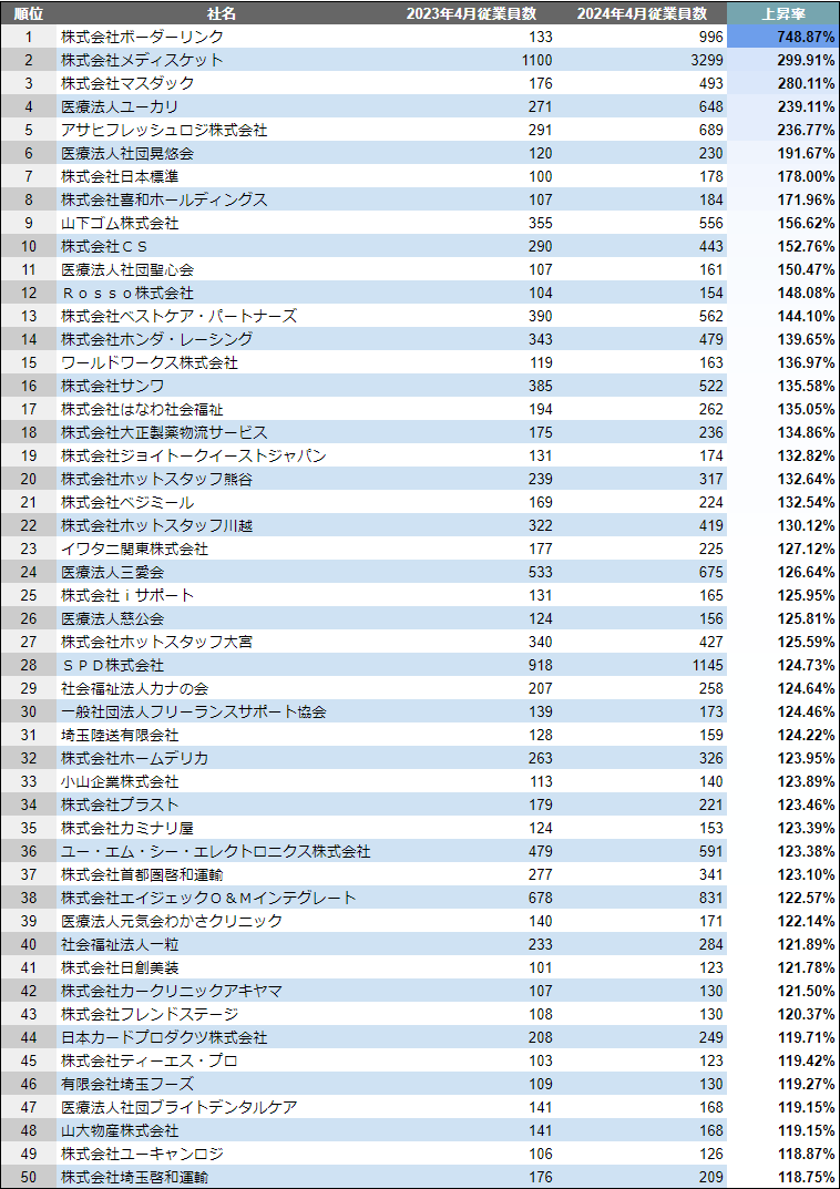 埼玉県×成長企業ランキングTOP50について