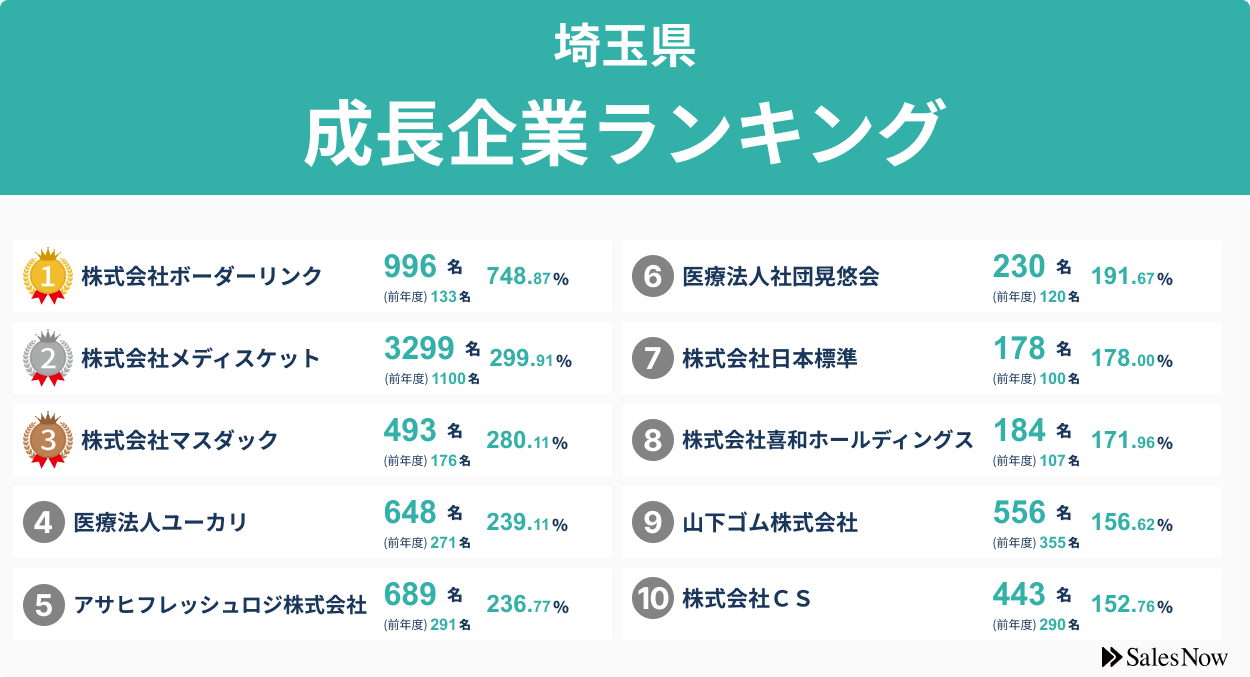 【埼玉県】成長企業ランキングTOP50!/SalesNow DBレポート