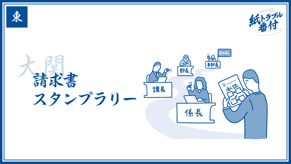 請求書の支払い承認印を役職順にもらう規定があり、押印依頼で社内を駆け回る。
