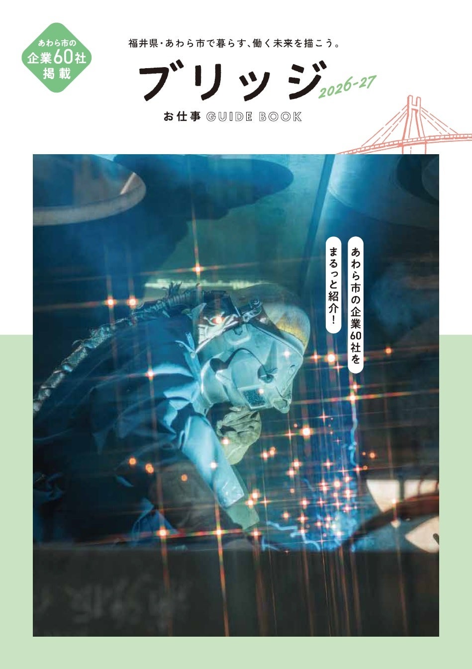 あわら市は若い世代がやりがいを持って働ける多様な産業がバランスよく存在し、2019年(令和元年)から企業等魅力紹介ガイドブック『ブリッジ』を制作してきました。今回、働く情報と暮らす情報を1冊に集約し、市内外の方が“働く×暮らす”を具体的にイメージできる構成に刷新しました。