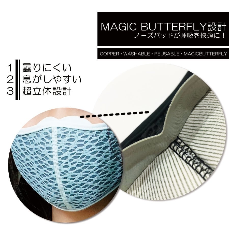 マジックバタフライ設計により通常よりもはるかに息がしやすくスポーツに最適のマスクです。