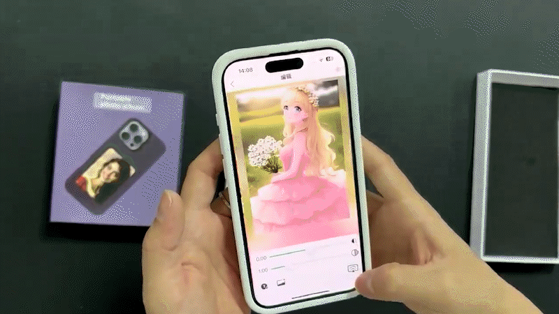 画像の切り替えは専用アプリ「NETME」で完結します。スマートフォン内の画像フォルダから写真やイラストを選び、スマホをケースにかざすだけで表示内容を変更できるため、誰でも直感的に操作できます。
