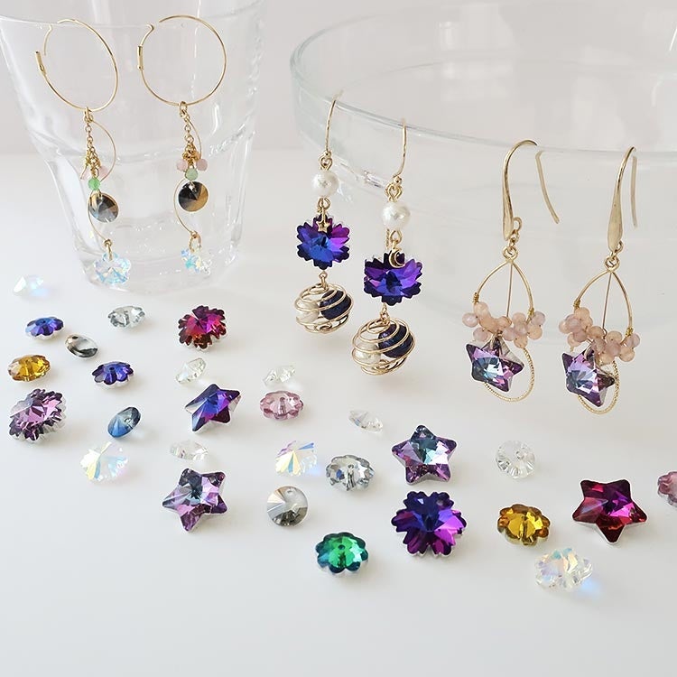 きらめくカットガラスパーツで、暗くなりがちな冬のファッションに彩りを添えて。