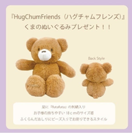 バースデイオリジナルブランド「futafuta(フタフタ)」の人気キャラクター「Hug Chum Friends(ハグチャムフレンズ)」のくまのぬいぐるみをプレゼントします。